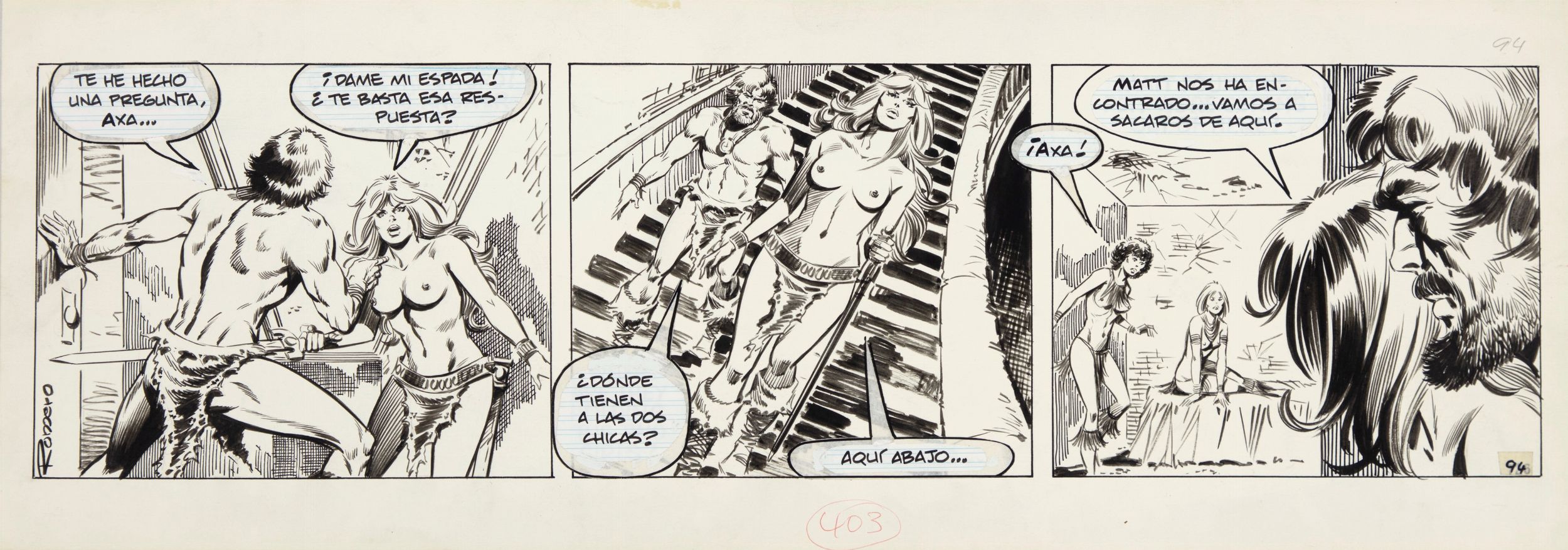 1978 Striscia giornaliera n. 94 del 1978 per 'Axa'. Striscia fantascientifica edita sul Sun dal 1978 al 1986, creata dal maestro spagnolo Romero. Timbro editoriale del Sun al retro. Firmata.
