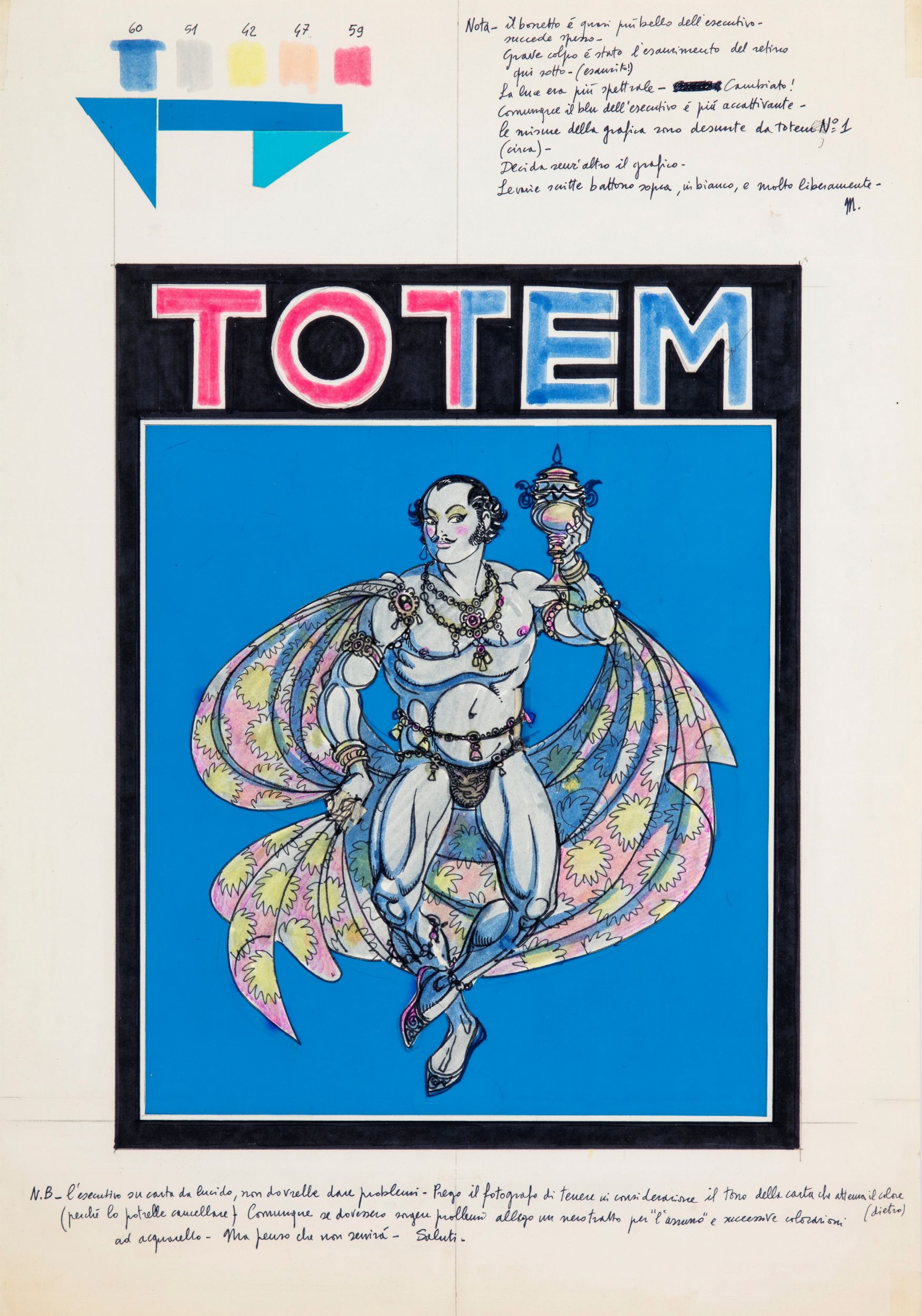 pennarelli e retino su cartoncino, 35 x 49,5 cm 1985 Preliminare di copertina realizzato da Magnus per la pubblicazione a episodi de 'Le 110 pillole' sulla rivista Totem Magazine nel 1985, opera utilizzata successivamente come copertina per il volume '110 Pillole: storyboard' dalle Edizioni REM nel 2000. Tra le opere più iconiche dell'intera produzione del maestro bolognese; il suo Hsi Men, utilizzato anche da Alessandro Editore per la copertina della ristampa integrale dell'opera nel 2006, è il protagonista di questo capolavoro tratto da un romanzo erotico cinese del XVI secolo. La storia racconta di un monaco indiano che regala a Hsi Men 110 pillole afrodisiache da usare non più di una al mese che non viene ascoltato e Hsi Men si abbandona ad una vita di voluttà che lo consuma in pochi mesi. Del lungo romanzo cinese di più di 800 pagine Magnus fa il riassunto dello stile di vita della famiglia di Hsi Men e descrive minuziosamente le parti più erotiche; in 46 pagine crea un'opera a fumetti immortale pubblicata in tutto il mondo. Affascinante notare le riflessioni che Magnus stesso face nelle sue indicazioni autografe indirizzate all'editore: > Firmato.
