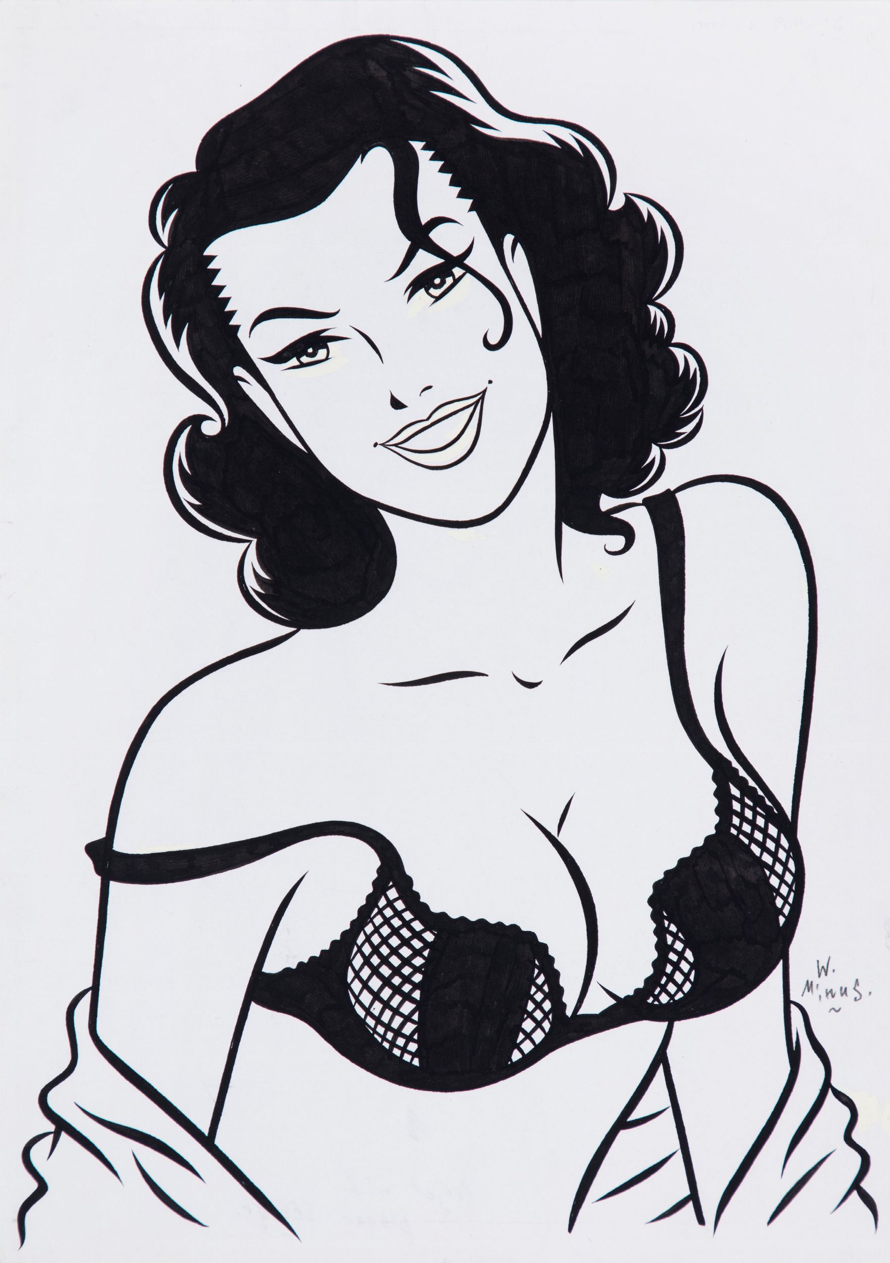 anni 90 Illustrazione originale realizzata da Minus negli anni '90. Nato a Roma, diplomatosi alla Scuola Nazionale Superiore dei Mestieri e delle Arti Applicate di Parigi e illustratore per riviste come 'Elle', 'Lire', 'Marie Claire', 'Cosmopolitan' e 'The New Yorker', Minus è un fumettista al confine tra la linea chiara e la pop art, ha dedicato la sua arte alla rappresentazione amorevole delle donne. Il suo segno essenziale, naturalmente elegante, fa di lui uno dei migliori artisti della pin-up art contemporanei. Firmata.