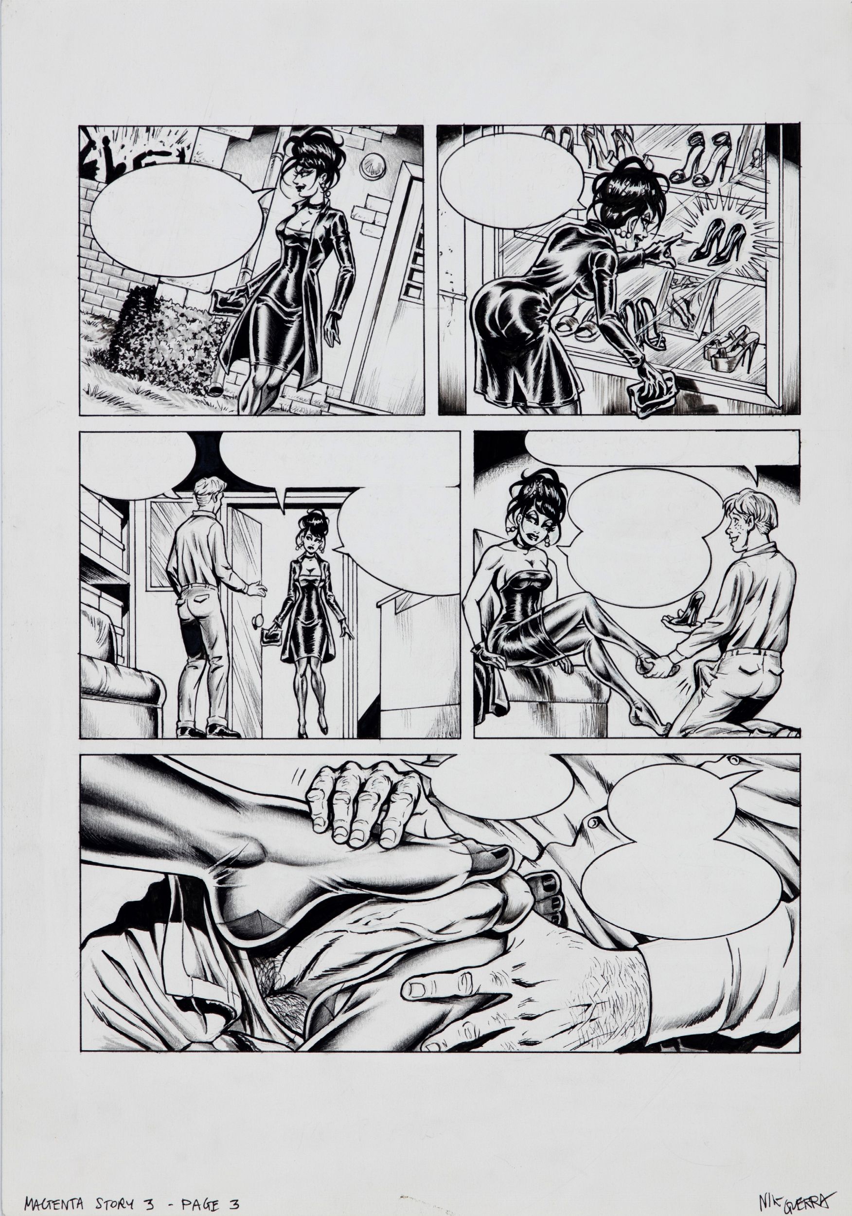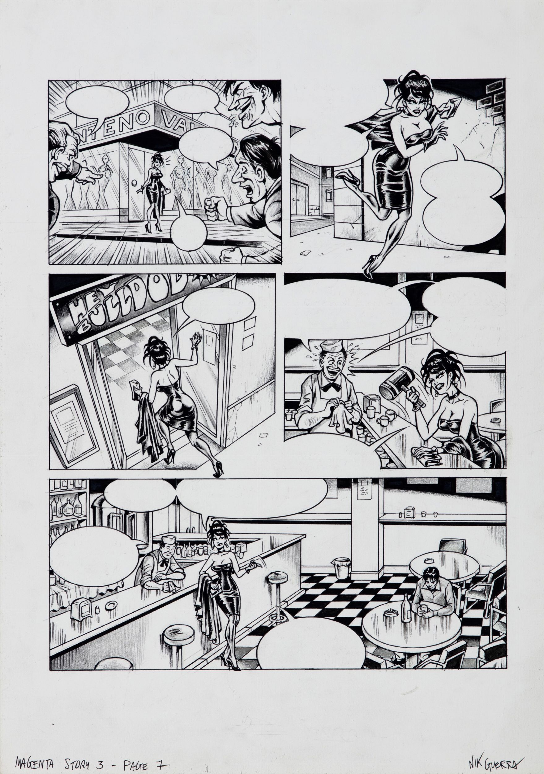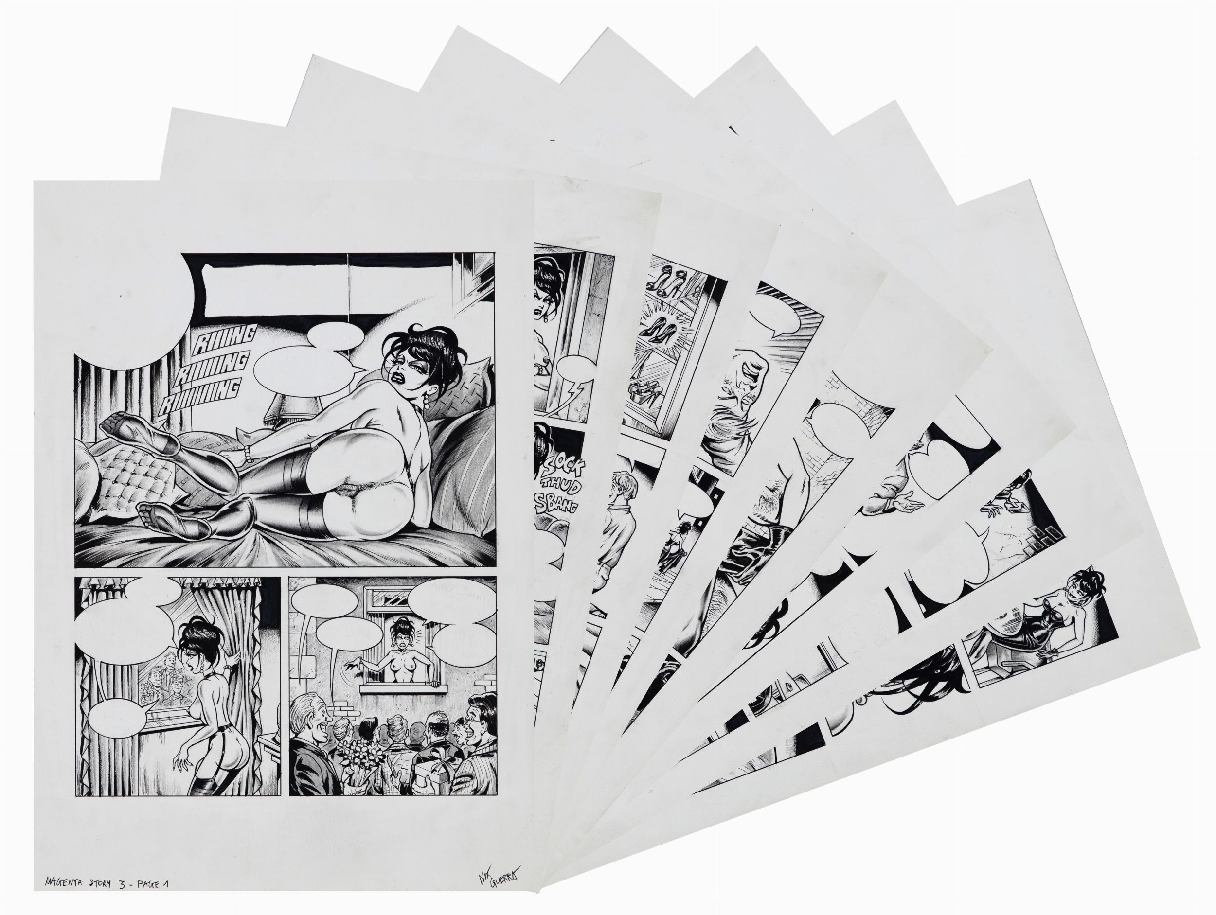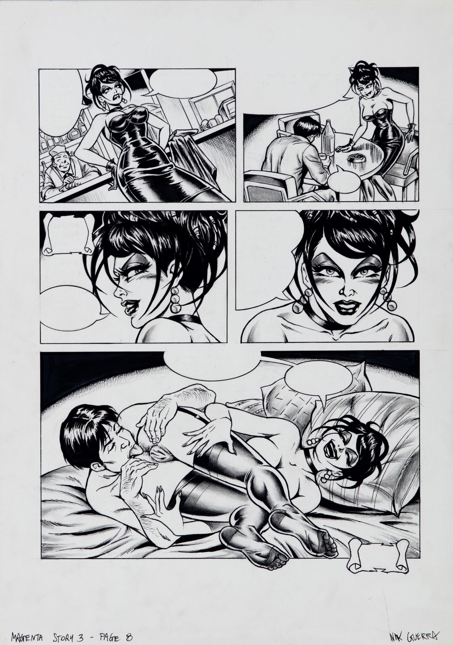 2007 Storia completa composta da 8 tavole originali realizzate da Guerra per ' Il Magenta Day', avventura erotica della sua Magenta edita per la prima volta sulla rivista X Comics n. 76 nel 2007.