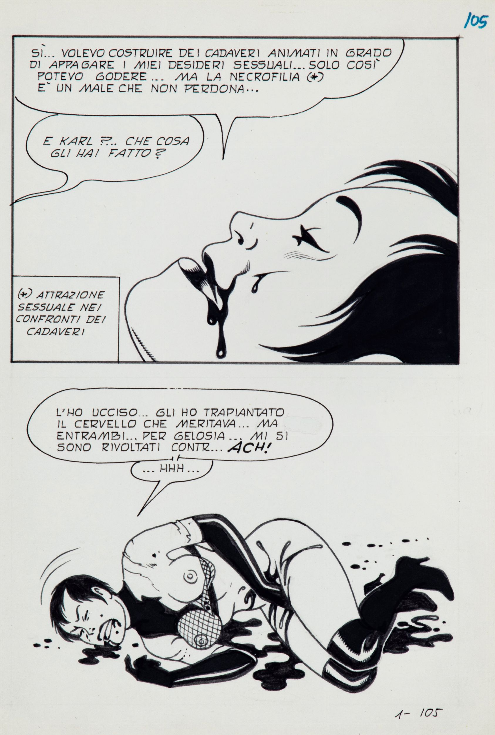 1981 Tavola originale realizzata da Magnus per 'La fabbricante di mostri', edita su Necron n. 1 a pag. 105 dalla Edifumetto nel 1981.