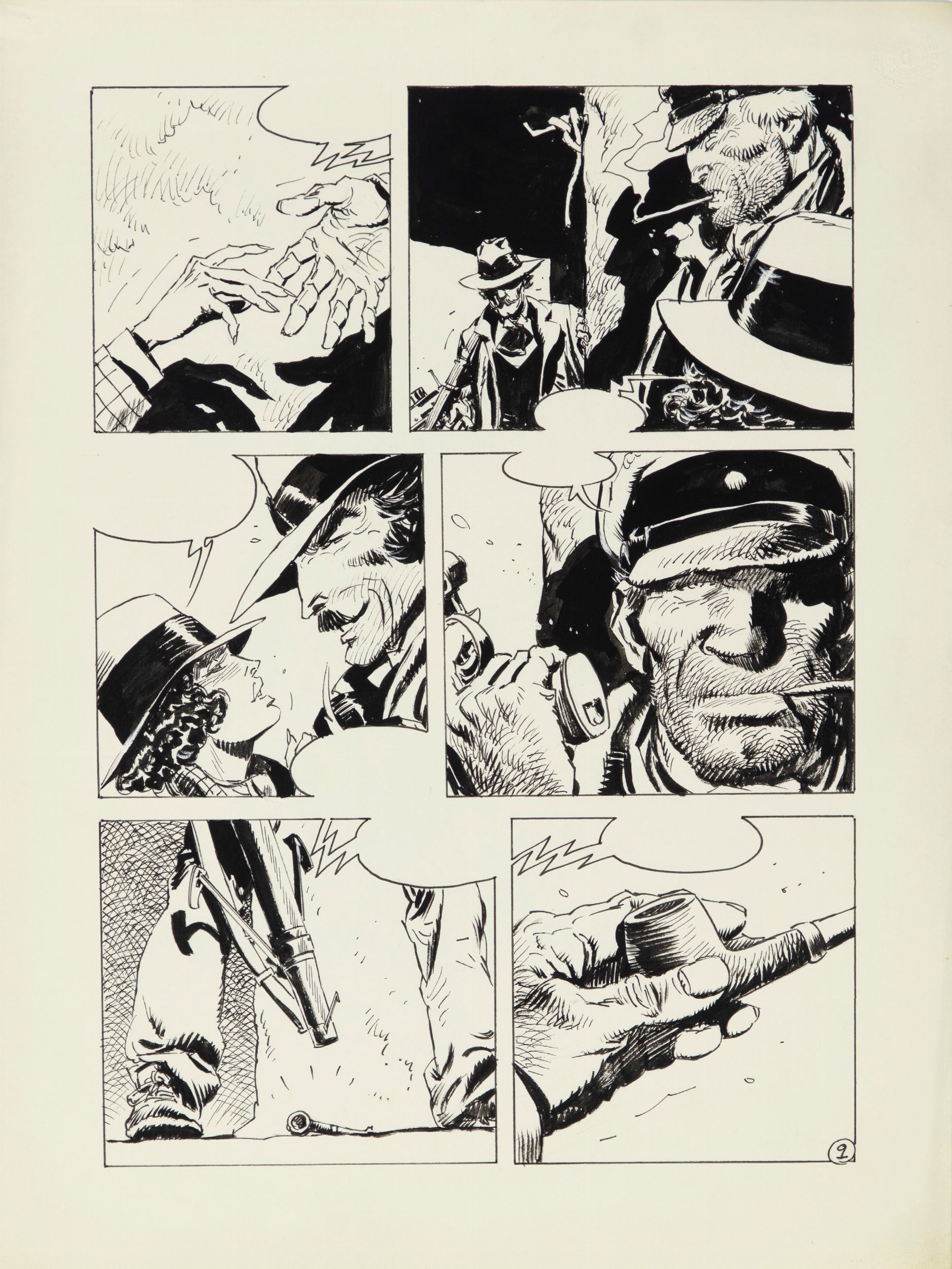 matita e china su cartoncino, 30,5 x 40,5 cm anni 70 Tavola originale realizzata da Breccia per il suo capolavoro Alvar Mayor, serie scritta da Carlos Trillo ed ambientata nel Perù del XVI secolo, apparsa per la prima volta sulle pagine della rivista argentina Skorpio nel 1977.