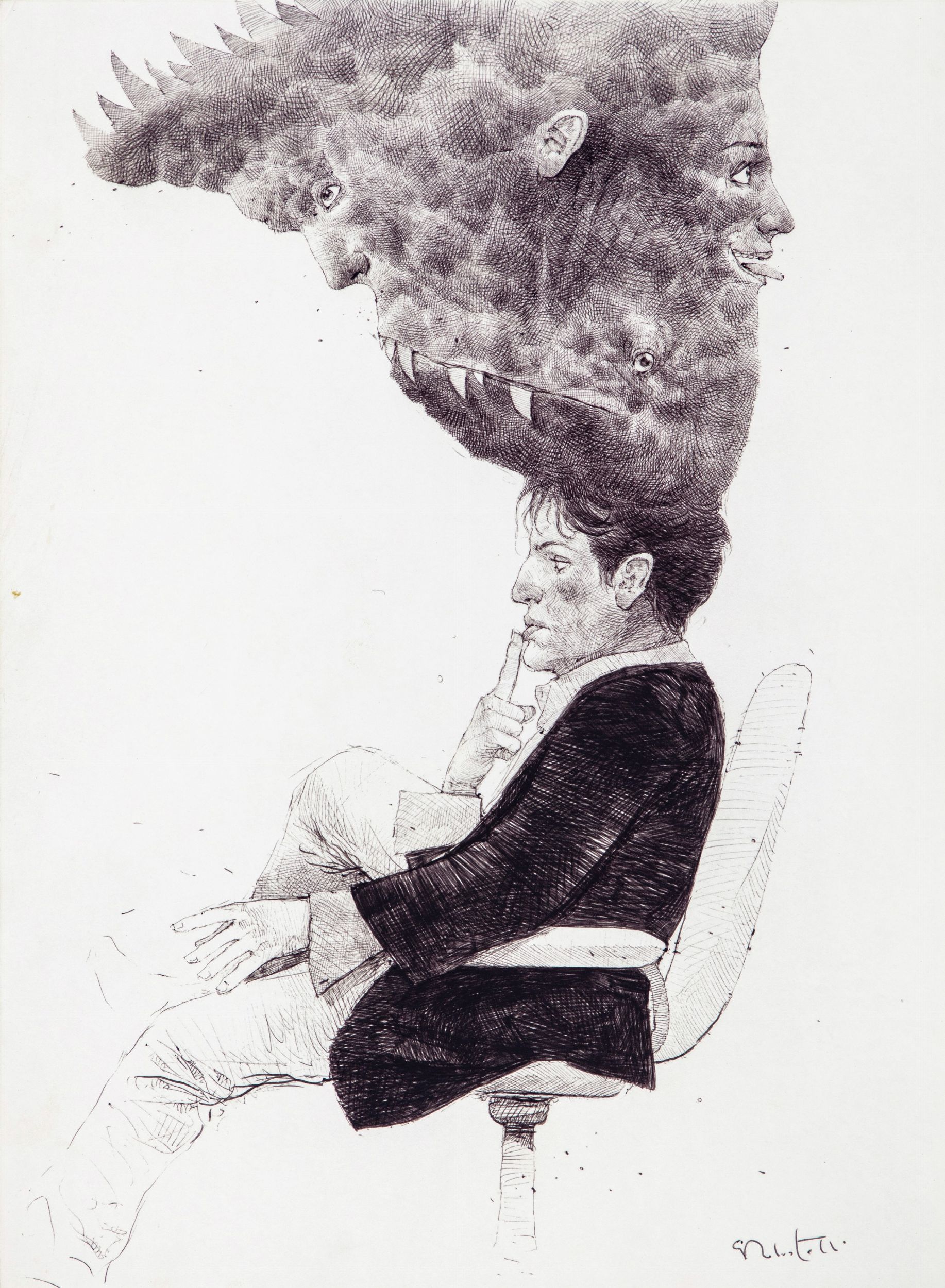 2011 Illustrazione originale realizzata da Robustelli nel 2011 come omaggio a Dylan Dog. Firmata al fronte e firmata, datata e dedicata con sketch (volto di Groucho) al retro.
