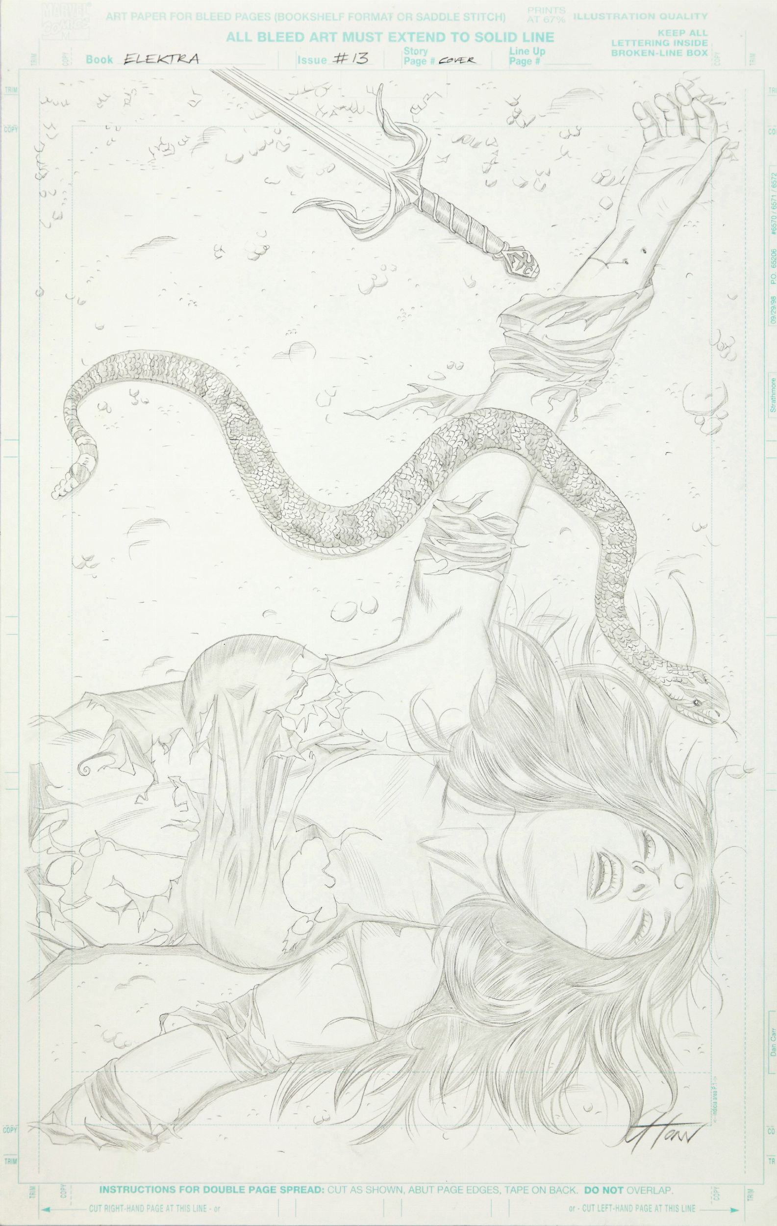 2002 Originale di copertina realizzato da Horn per Elektra n. 13, edito dalla Marvel nel 2002. Si allega la stampa della versione colorata digitalmente. Entrambe firmate.