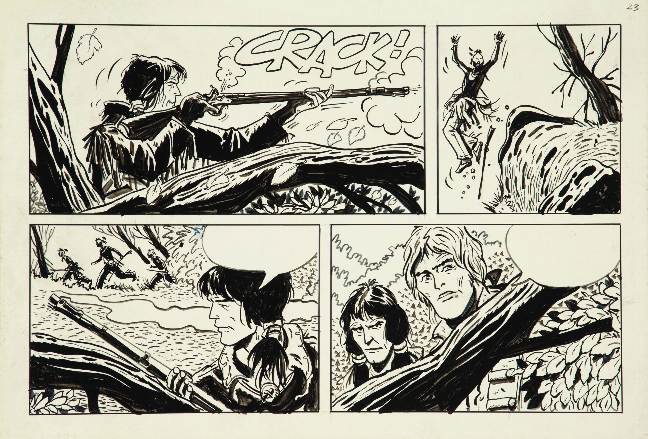 matita e china su cartoncino, 36 x 24,5 cm anni 70 Tavola originale realizzata da Vianello negli anni '70 su richiesta del suo maestro Hugo Pratt, dalle quali avrebbe dovuto trarne una delle sue avventure, pubblicata recentemente sull'artbook 'Lele Vianello' edito da Segni d'Autore nel 2013.
