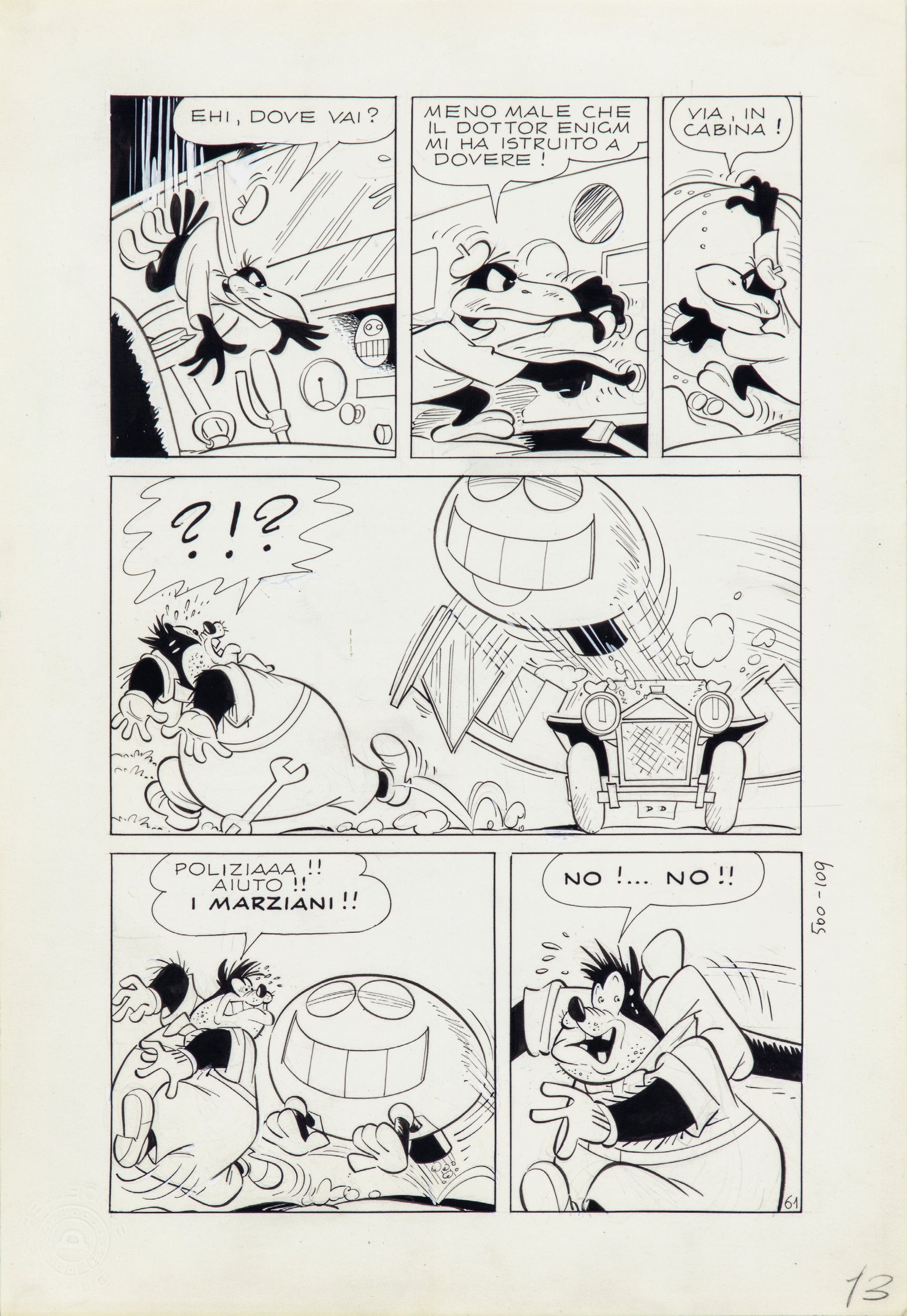 1965 Tavola originale realizzata da Scarpa per 'Gancio vince sempre!' edita sul mitico Topolino n. 500 a pag. 13 nel Giugno 1965. Chine di Giorgio Cavazzano.