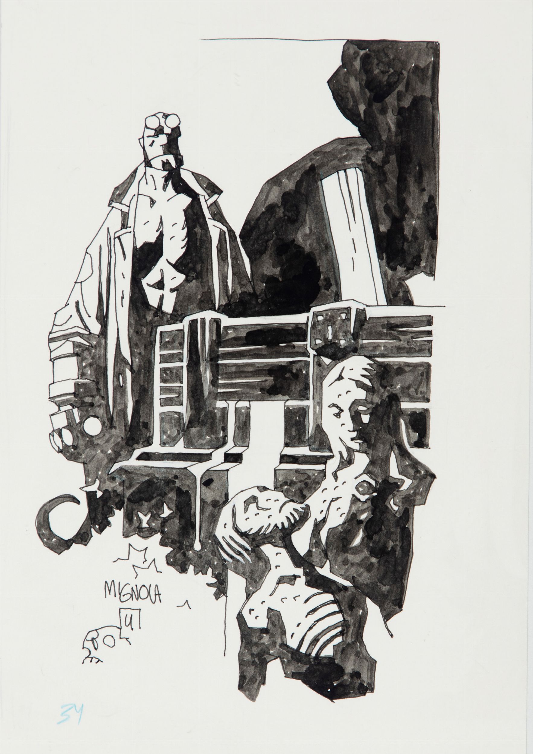 2004 Illustrazione originale realizzata da Mignola raffigurante il suo Hellboy, pubblicata nello sketchbook 'Hellboy 10th Anniversary 1994-2004: A Book of Drawings by Mike Mignola' nel 2004. Firmata e datata.
