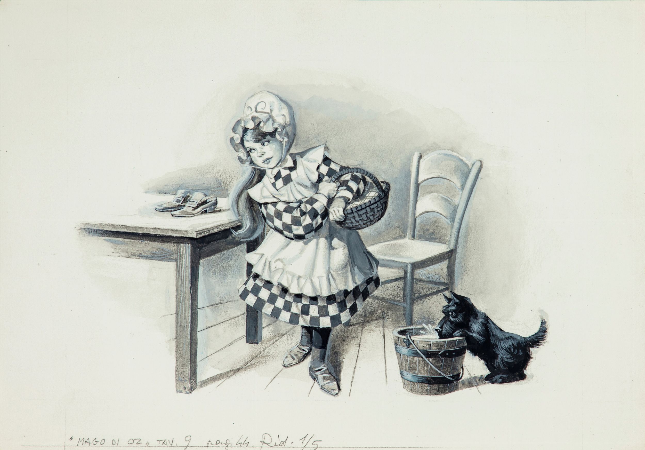 tempera su cartoncino, 34,5 x 24 cm 1986 Illustrazione originale realizzata da Baraldi per 'Il mago di Oz', edita a pag. 44 dalla Fabbri Editore nel 1986. Tra i più prolifici e talentuosi illustratori della seconda metà del '900, Baraldi si confrontò con i più grandi autori di tutti i tempi, da Salgari a Verne, da Dumas a Omero.