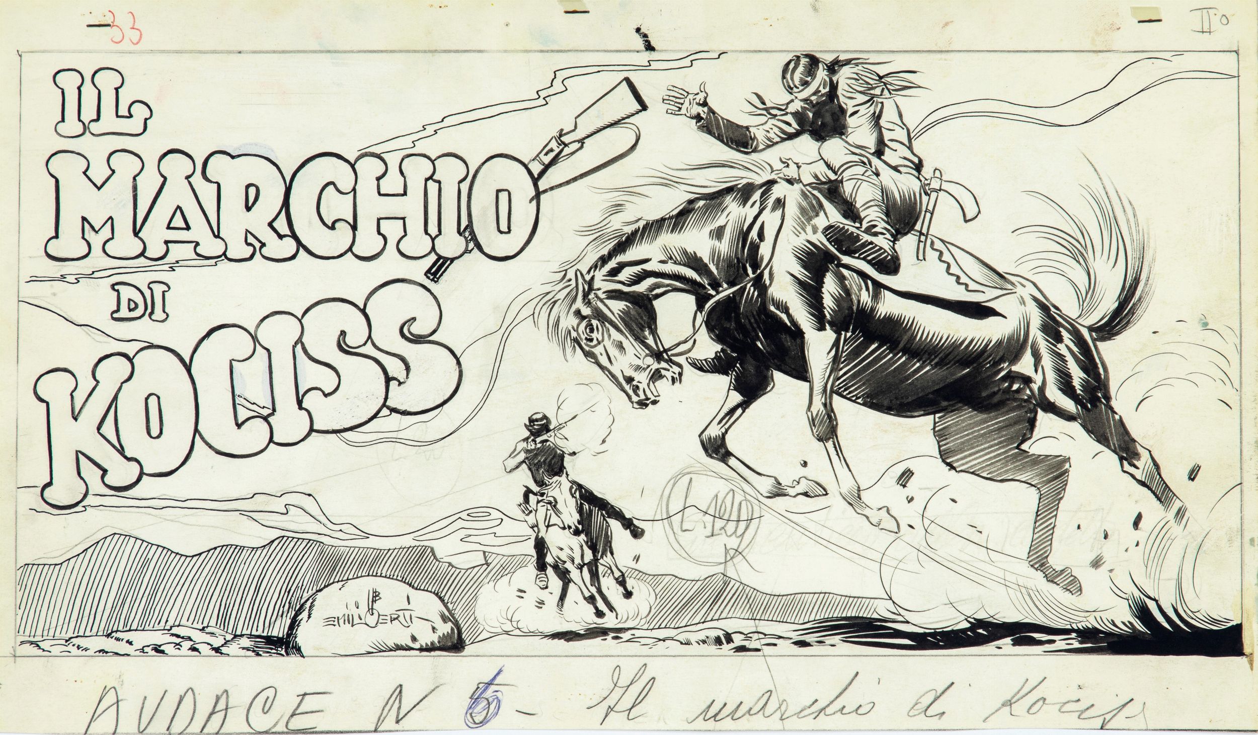 1957 Originale di copertina realizzato da Uberti per 'Il Marchio Di Kociss', edito nella Collana Audace n.6 dalle Edizioni Audace nel 1957. Punti metallici al margine superiore. Firmato.