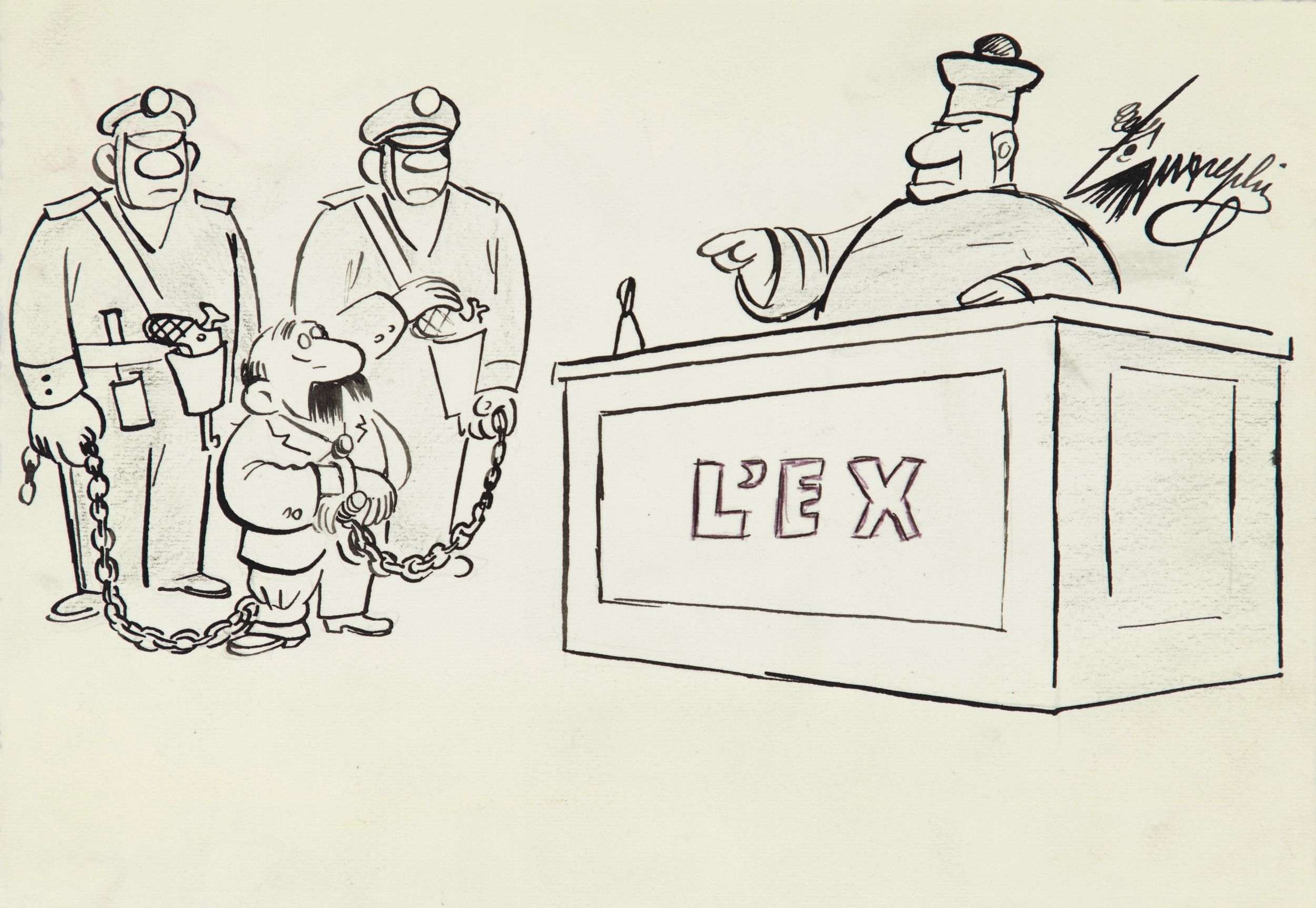 1964 Illustrazione originale realizzata da Guareschi e pubblicata sulle pagine del quotidiano La Notte il 3 Settembre 1964. > Firmata al fronte e datata al retro.