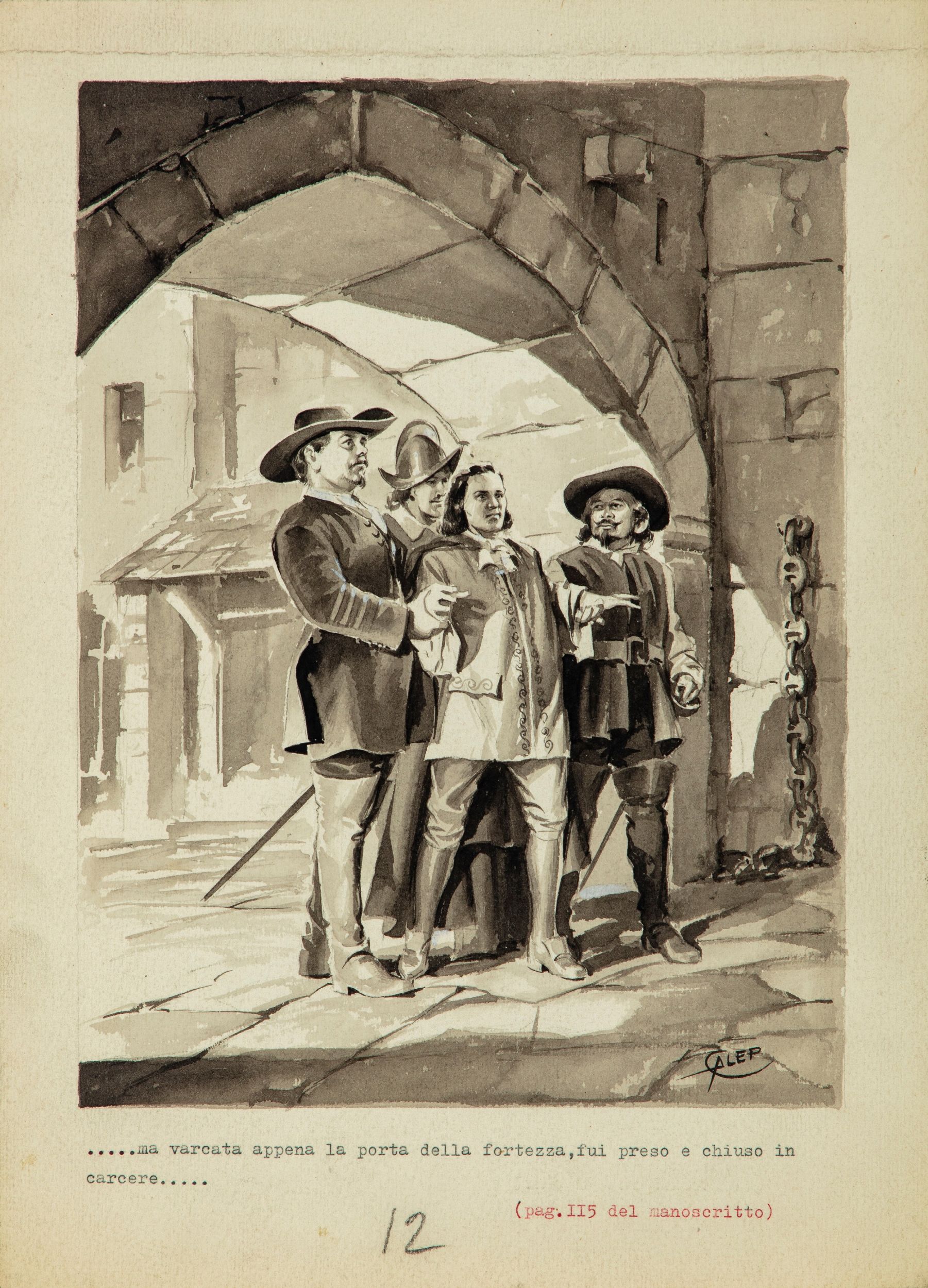1948 Illustrazione originale realizzata da Galleppini per il romanzo 'La maschera di ferro' di Alexandre Dumas edito da Nerbini nel 1948. Firmato.