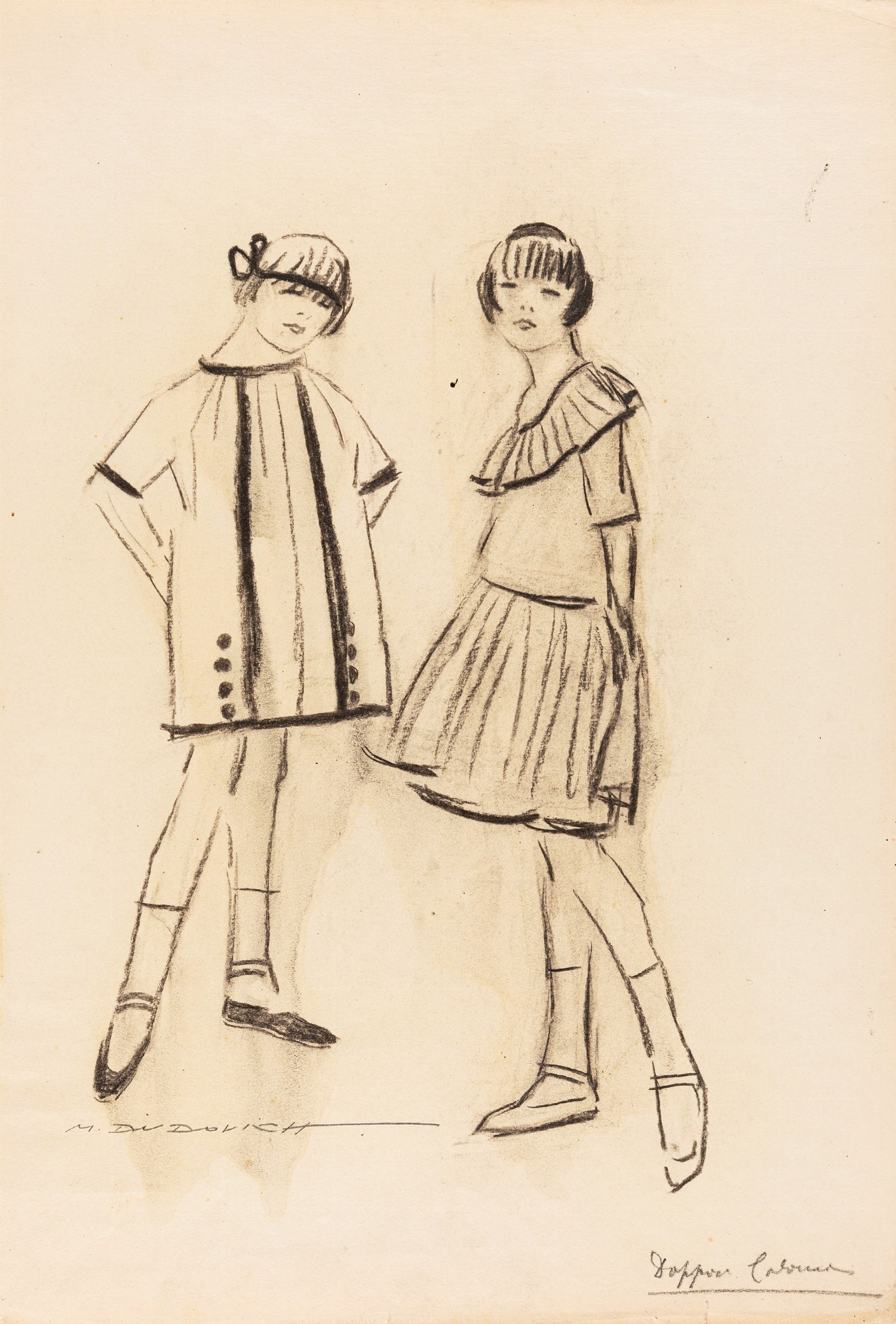 matita e carboncino su cartoncino, 32,5 x 48,5 cm 1919 Illustrazione originale realizzata da Dudovich tra il 1919 e il 1921 per le pagine de Il Resto del Carlino di Bologna dove i grandi magazzini La Rinascente promuovevano i propri capi di abbigliamento. Opera pubblicata su 'Arti decorative 1895-1930' vol. 3 a pag. 73 da Banca Emiliana nel 1985. Provenienza: collezione Mario Missiroli (direttore Il Resto del Carlino Bologna). Piccolo strappo al margine inferiore. Firmata.