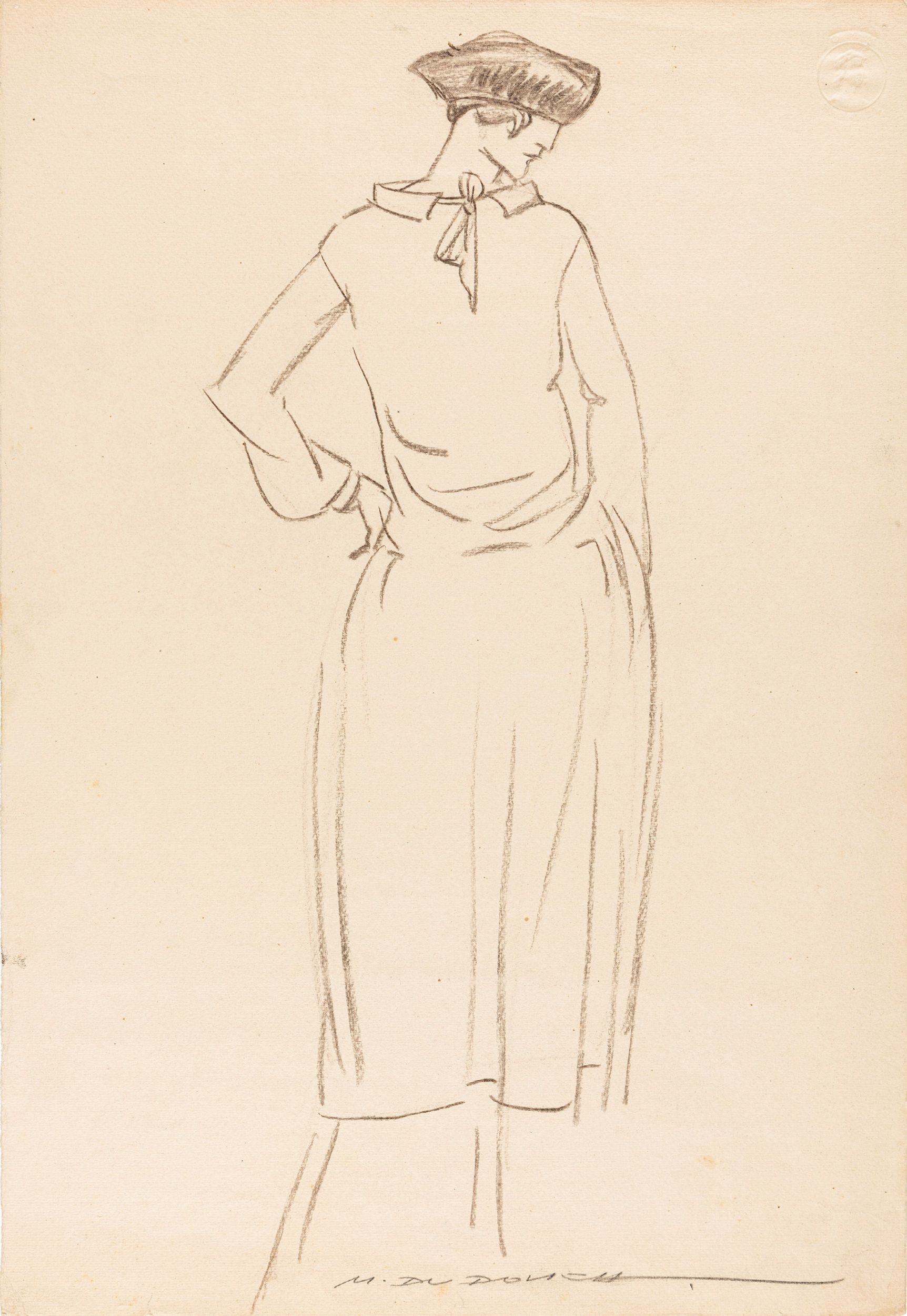 matita e carboncino su cartoncino, 32,5 x 48,5 cm 1919 Illustrazione originale realizzata da Dudovich tra il 1919 e il 1921 per le pagine de Il Resto del Carlino di Bologna dove i grandi magazzini La Rinascente promuovevano i propri capi di abbigliamento. Opera pubblicata su 'Arti decorative 1895-1930' vol. 3 a pag. 73 da Banca Emiliana nel 1985. Provenienza: collezione Mario Missiroli (direttore Il Resto del Carlino Bologna). Piccolo strappo al margine inferiore. Firmata.
