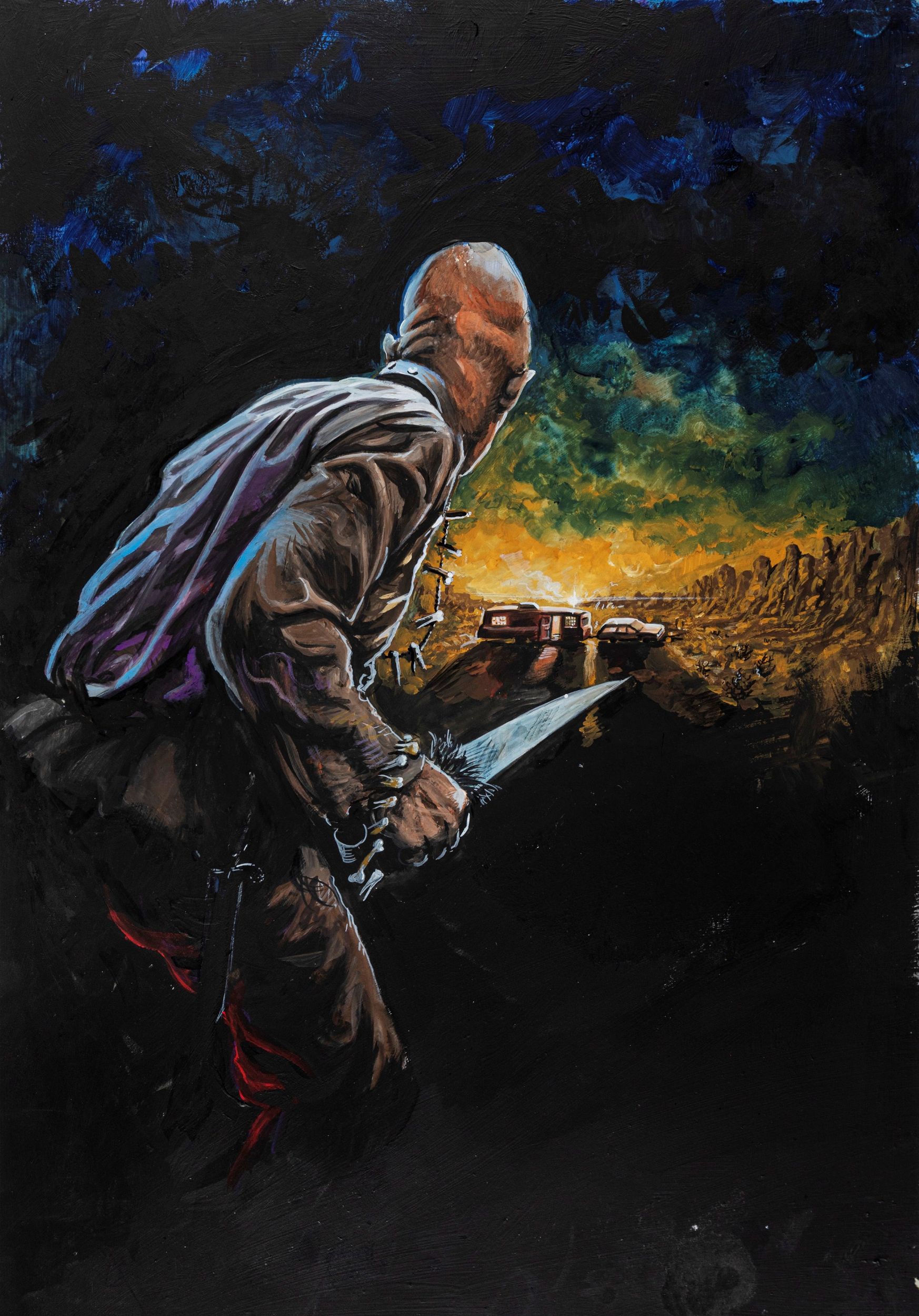 2018 Bozzetto originale realizzato da Kendorff per la versione DVD della locandina ufficiale del film 'Le colline hanno gli occhi', diretto da Wes Craven con Susan Lanier e Robert Houston nel 1977.