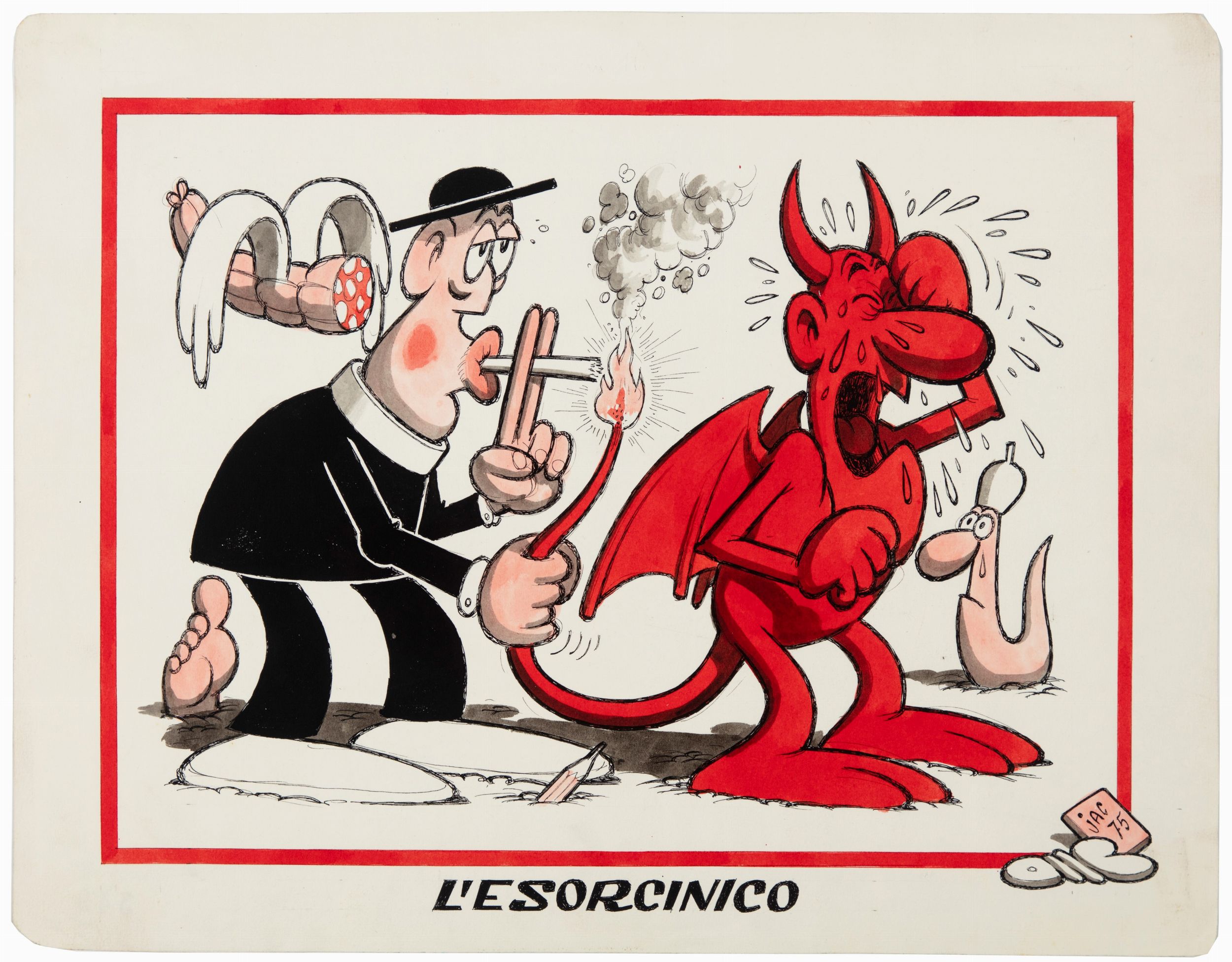 1975 Illustrazione originale realizzata da Jacovitti nel 1975. Firmata con lisca di pesce e datata.