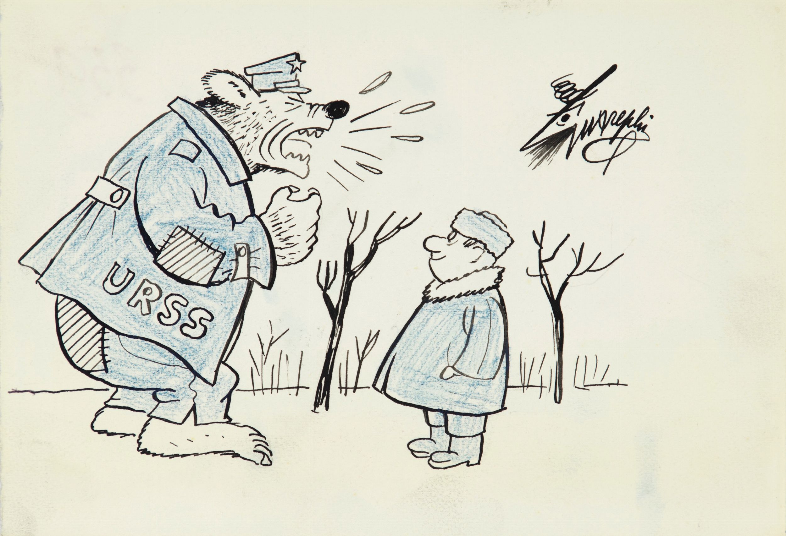 1964 Illustrazione originale realizzata da Guareschi e pubblicata sulle pagine del quotidiano La Notte il 10 Novembre 1964. > Firmata al fronte e datata al retro.