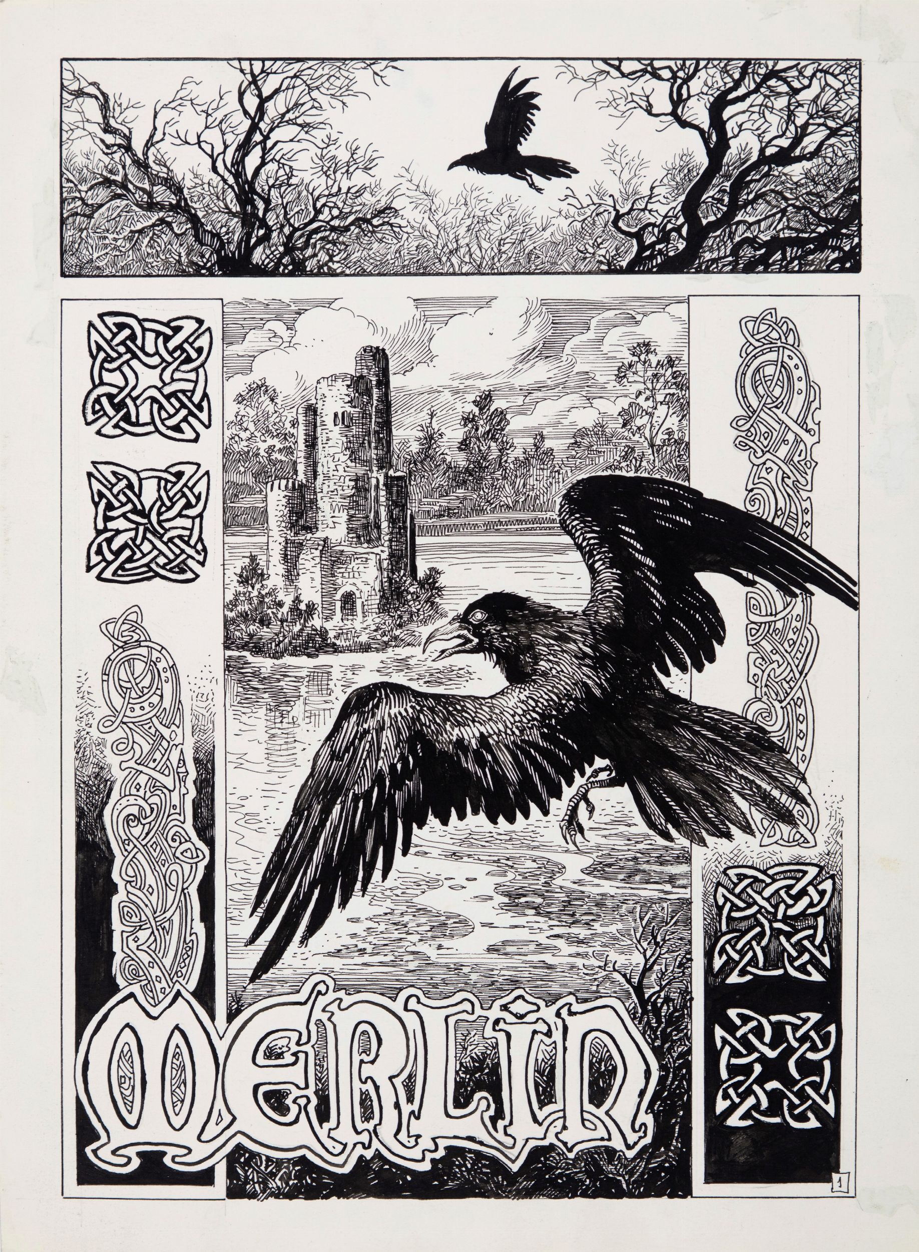 1994 Title page originale realizzata da Alcatena per il suo capolavoro 'Merlino', pubblicata a dalla Eura Editoriale nel 1994. Testi di Robin Wood.