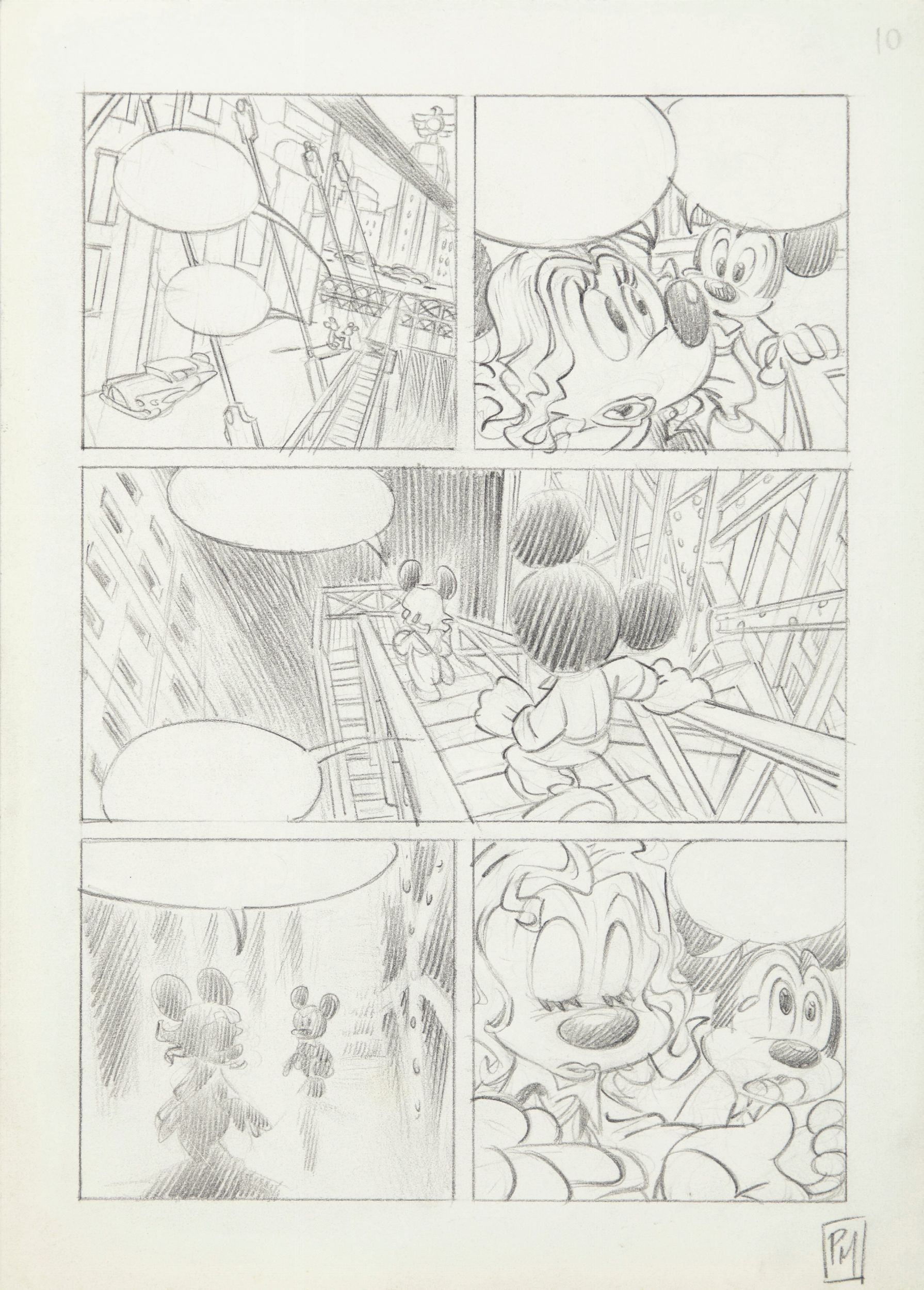 2017 Tavola preliminare realizzata da Mottura per 'Metopolis', pag. 10 dell'avventura edita su Topolino n. 3189 nel Gennaio 2017. Firmata.