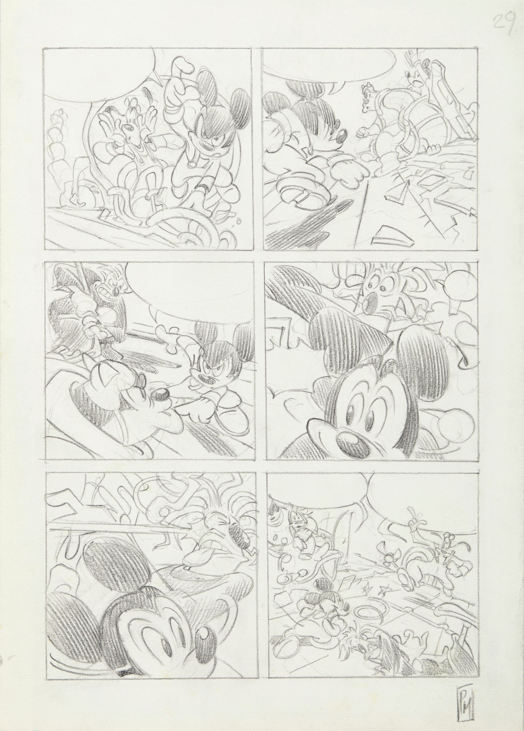 2017 Tavola preliminare realizzata da Mottura per 'Metopolis', pag. 29 dell'avventura edita su Topolino n. 3189 nel Gennaio 2017. Firmata.