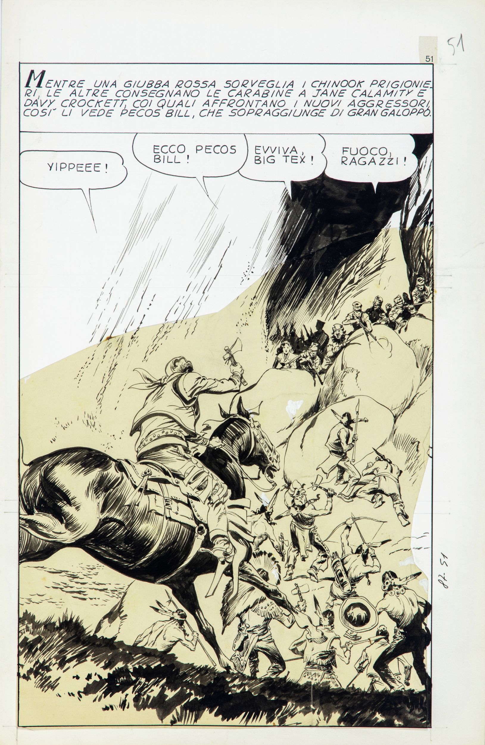 1962 Tavola originale realizzata da D'Antonio per 'La lancia d'oro' edito Pecos Bill n. 87 a pag. 51 nel 1962. Pieghe.