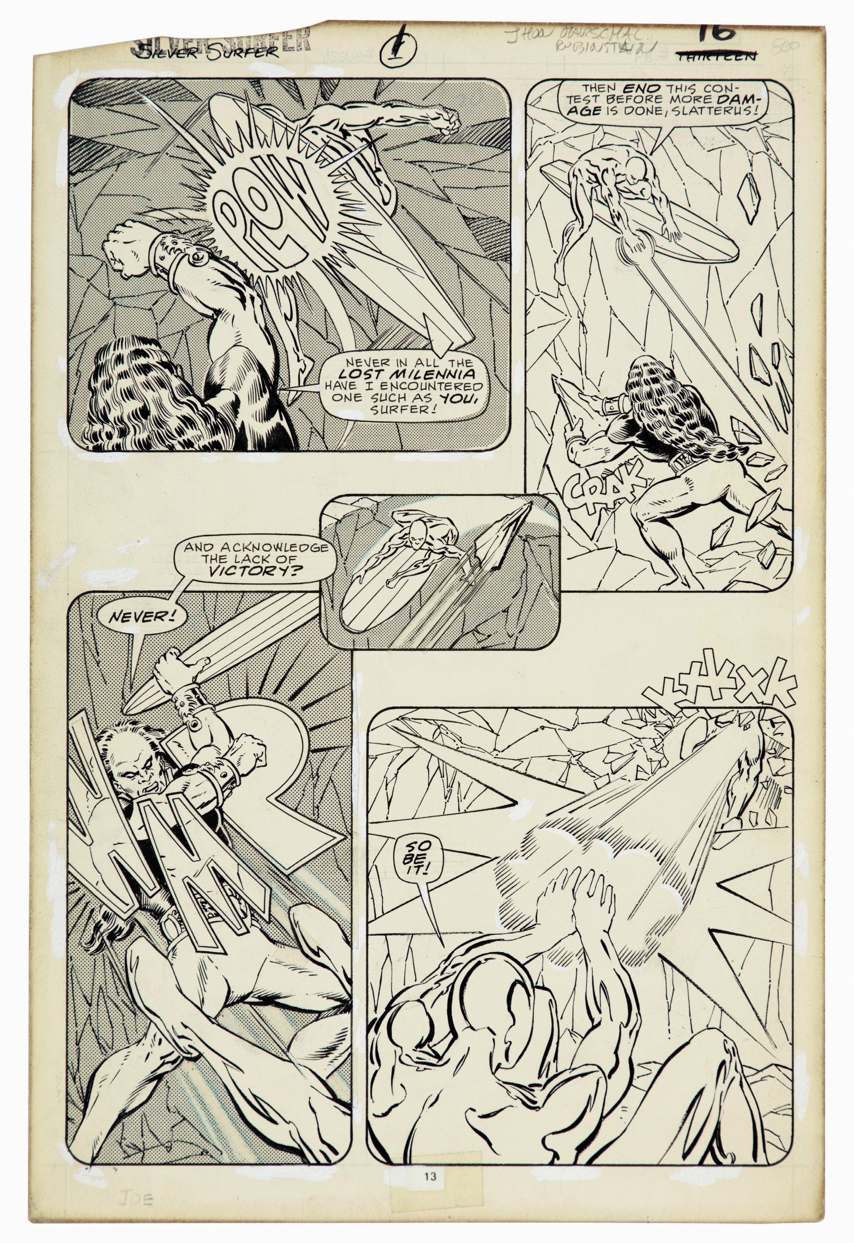 1987 Tavola originale realizzata da Rogers per 'FREE', edita su Silver Surfer n. 1 a pag. 13 dalla Marvel nel 1987. Chine di Joe Rubinstein.