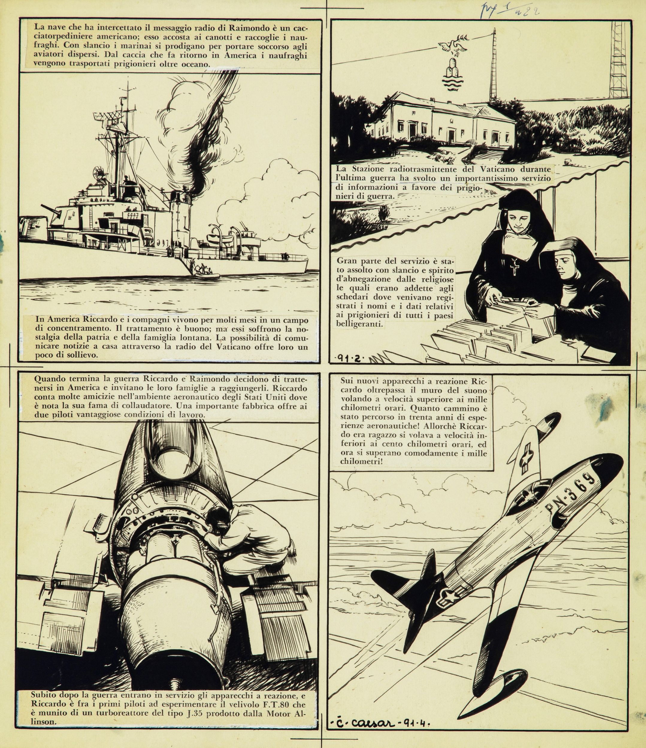 anni 40 Tavola originale realizzata da Caesar per una delle sue celebri avventure nei cieli edita sulle pagine de Il Vittorioso nei primi anni '40. Acquerellata al retro. Firmata.