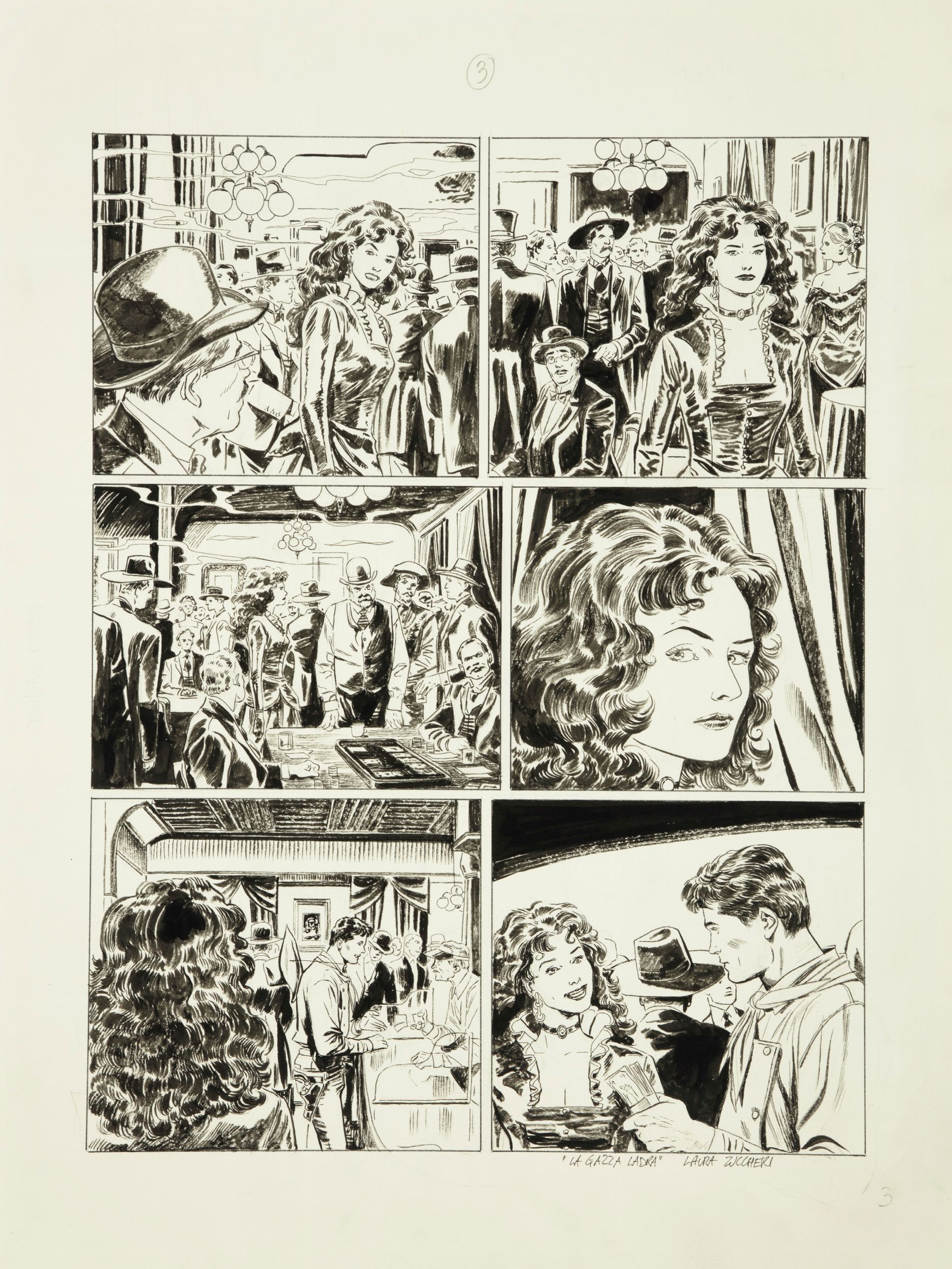 2022 Tavola originale realizzata dalla Zuccheri per 'La gazza ladra', edita sul Color Tex n. 21 a pag. 3 dalla Bonelli nel 2022. Firmata e titolata.