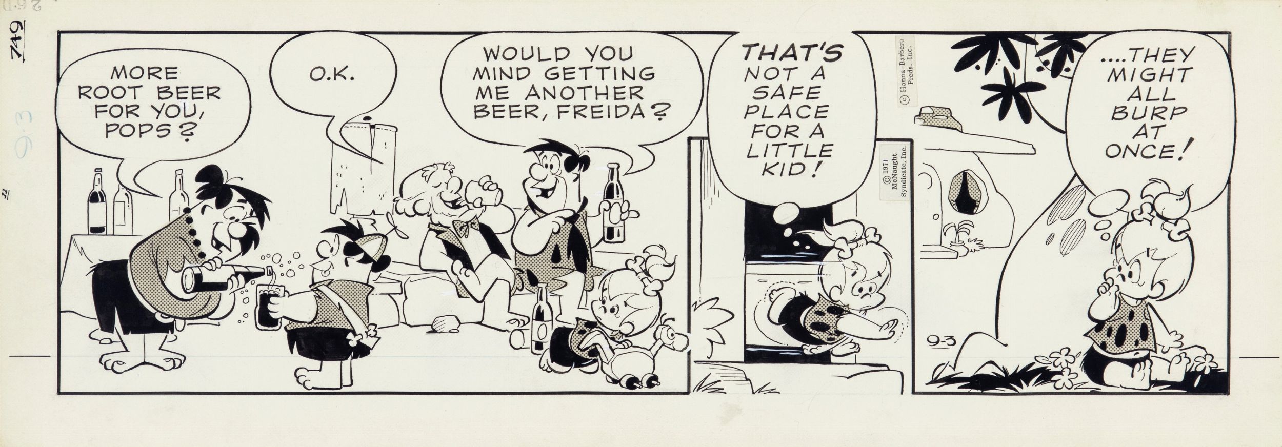 1971 Striscia giornaliera del 03/09/1971 per 'The Flintstones'.