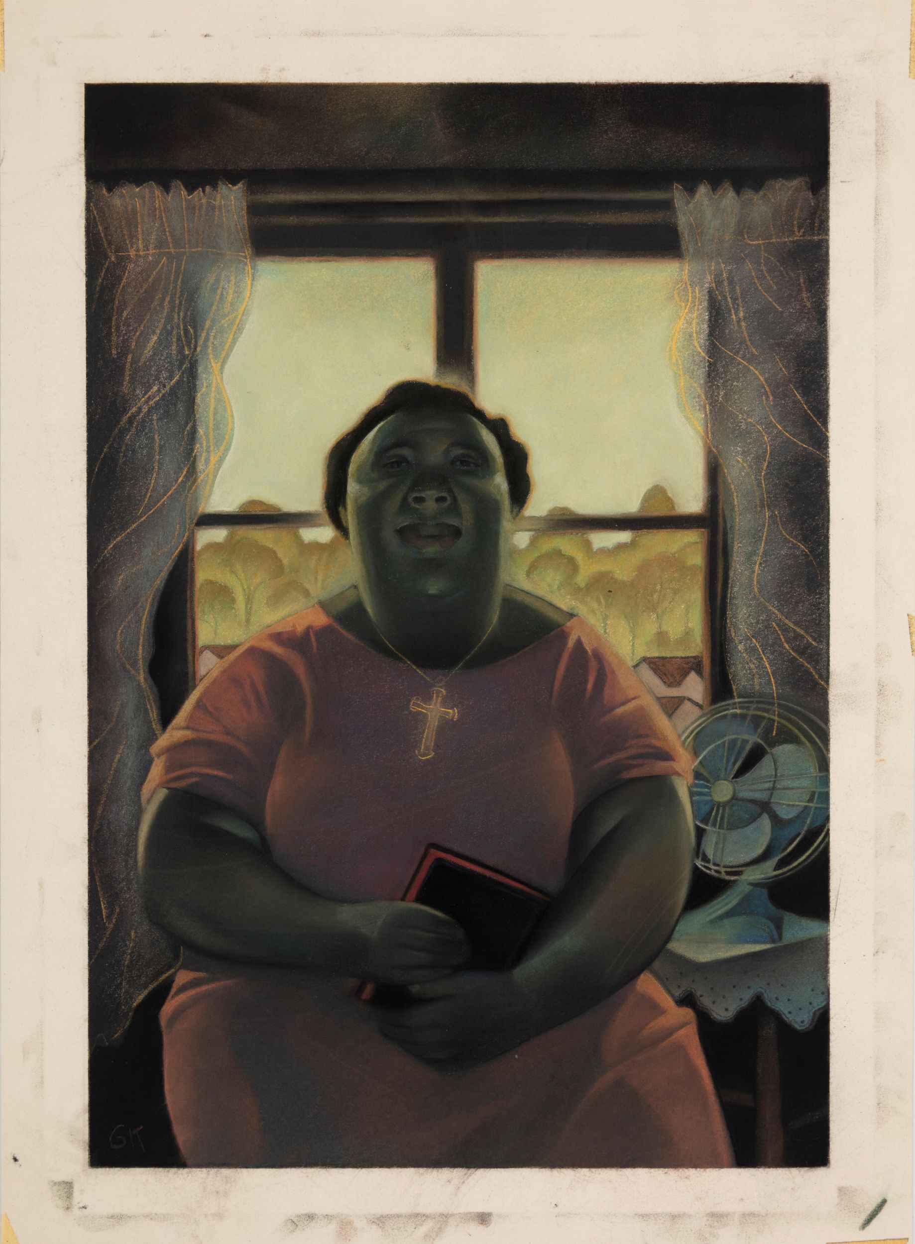 tecnica mista su cartoncino, 40,5 x 55,5 cm anni 2010 Illustrazione originale realizzata da Kelley nel 2001/2002. Illustratore americano che ha ottenuto consensi a livello internazionale, vincendo più di 20 medaglie dalla Society of Illustrators e il prestigioso Hamilton King Award, le opere di Kelley sono state pubblicate per la prima volta su Better Homes and Gardens, e successivamente su Time magazine, Rolling Stone, Atlantic Monthly e Playboy magazine. Firmata.