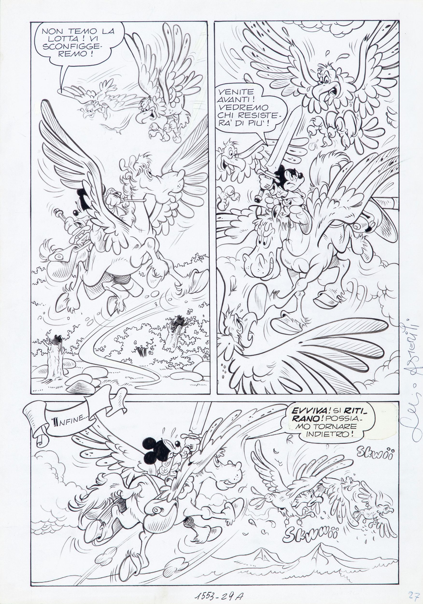 1985 Tavola originale realizzata da Asteriti per 'Topolino e il sigillo di re Artů', edita su Topolino n. 1553 a pag. 27 nel settembre del 1985. Firmata.