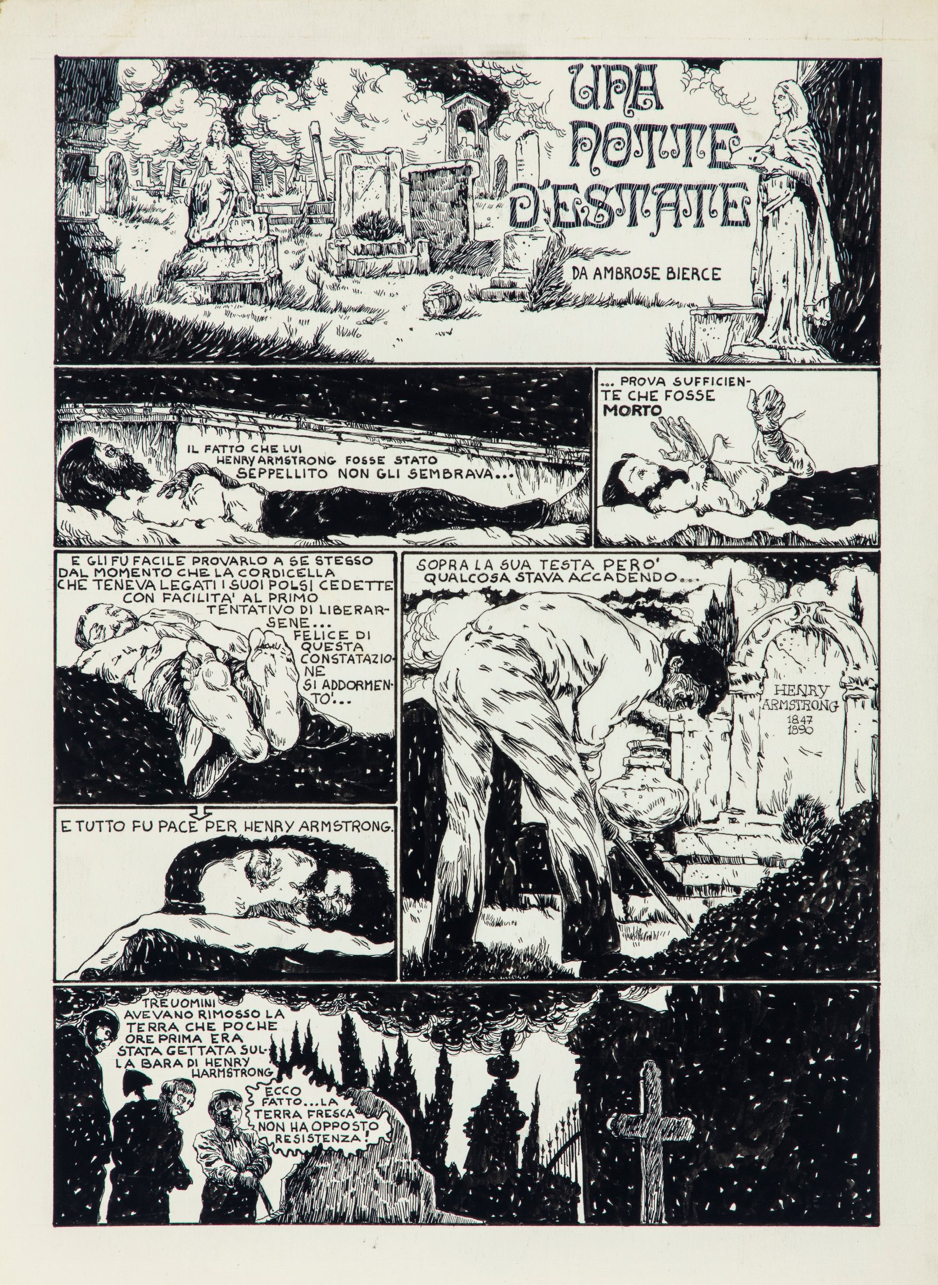 matita e china su cartoncino, 30 x 41 cm ciascuno 1975 Storia completa composta da 2 tavole originali realizzate da Madaudo per 'Una notte d'estate', trasposizione del racconto di Ambrose Bierce pubblicato sulle pagine della rivista Sgt. Kirk n. 43 del 1975.