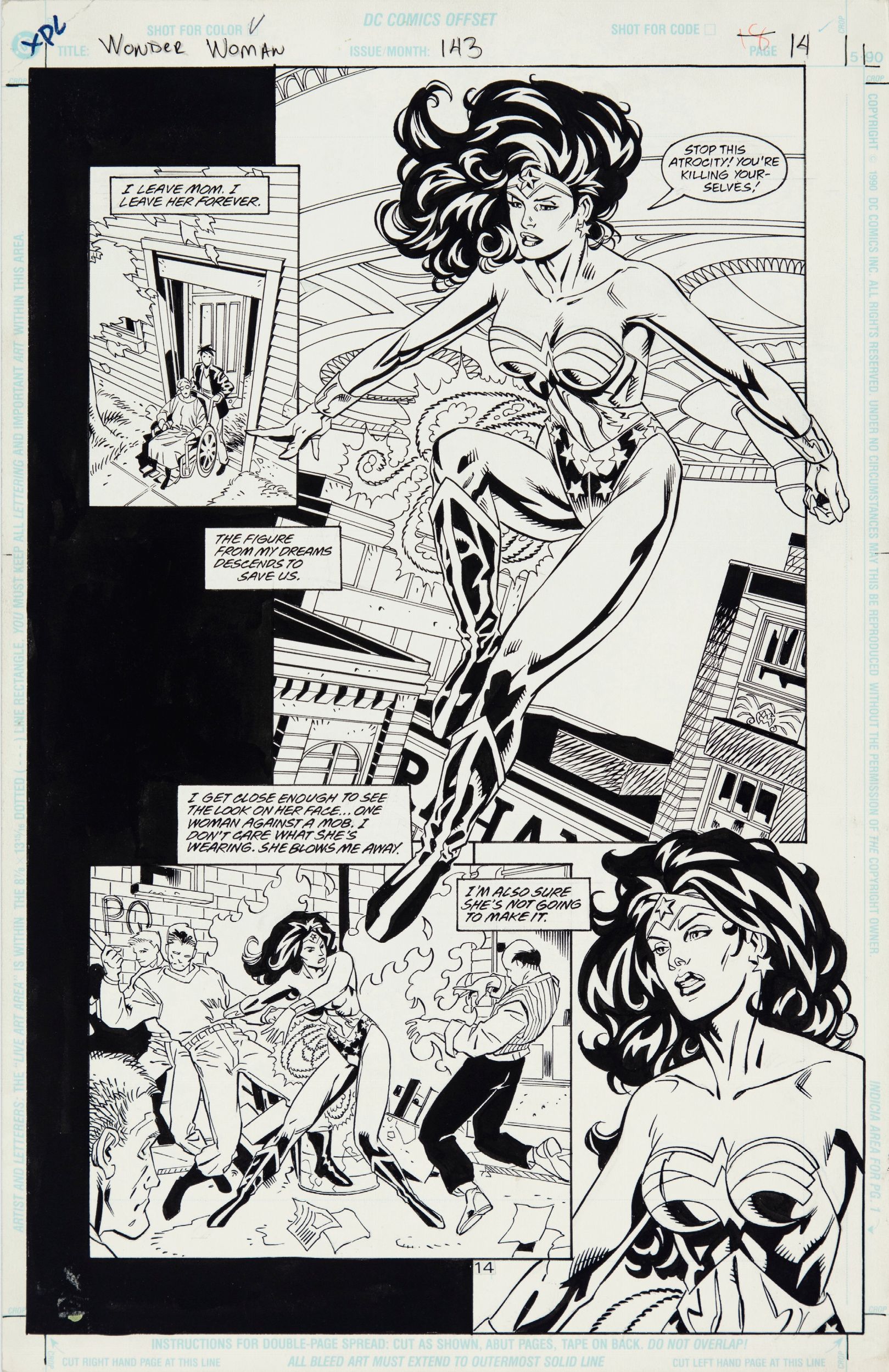 1999 Tavola originale realizzata da Paquette per 'Tragedy', edita su Wonder Woman n. 143 a pag. 14 dalla DC nel 1999. Lievi pieghe agli angoli.