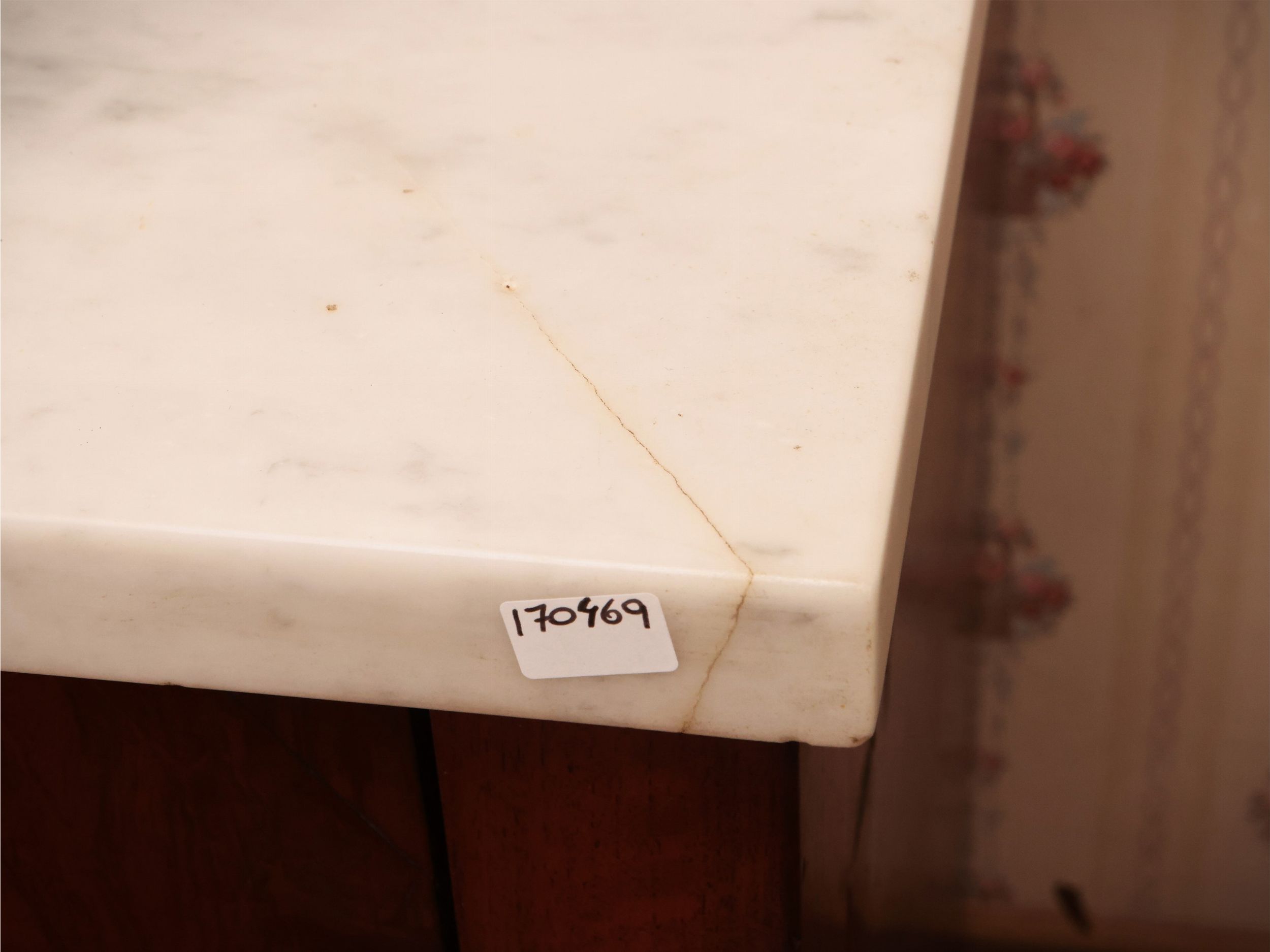 prima metà del XIX secolo piano in marmo bianco, quattro cassetti tra lesene a colonna, piedi a cipolla schiacciata