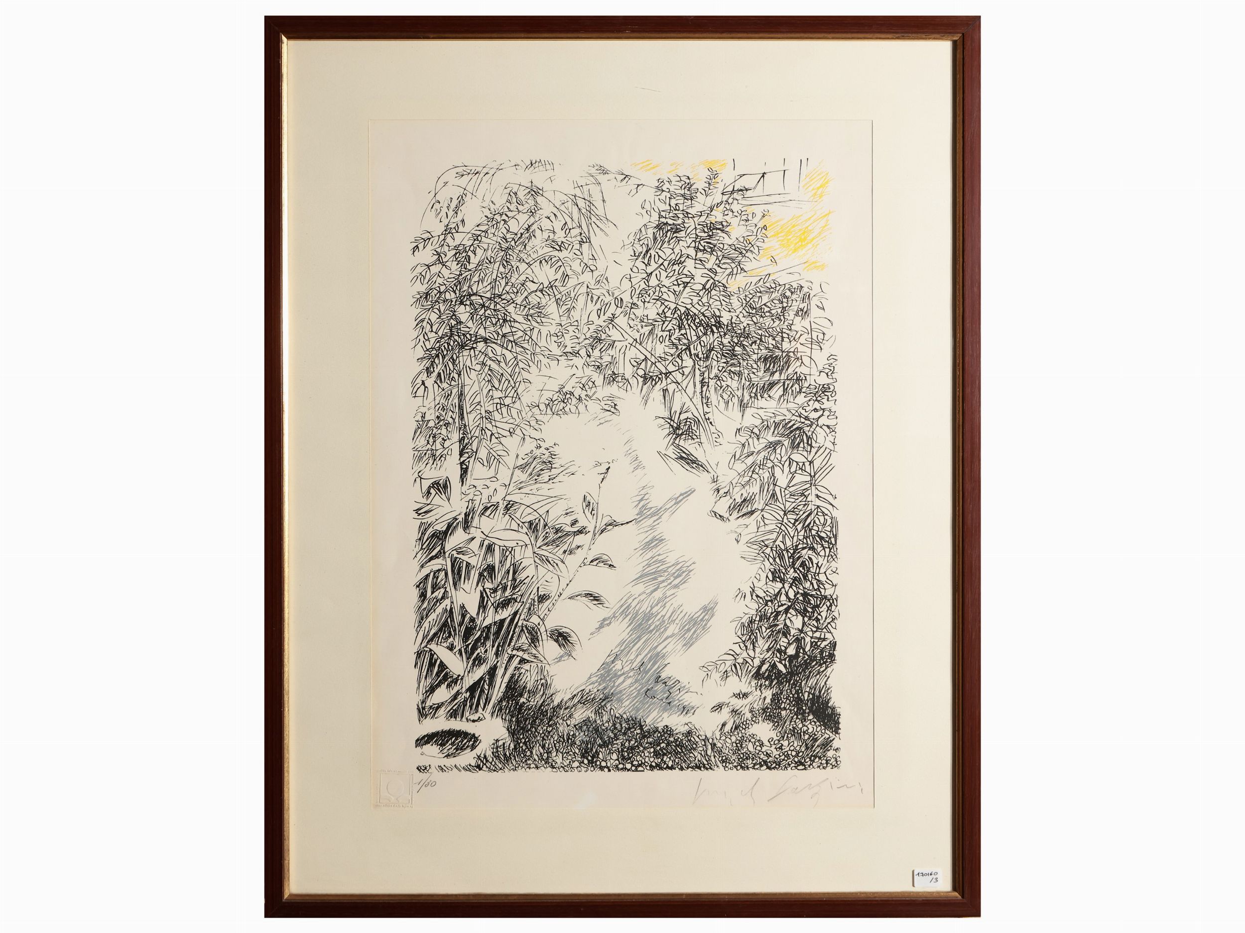 serie di tre litografie, es. n. 29/30, es. n. 25/50, es. n. 1/50, firmate, in cornice