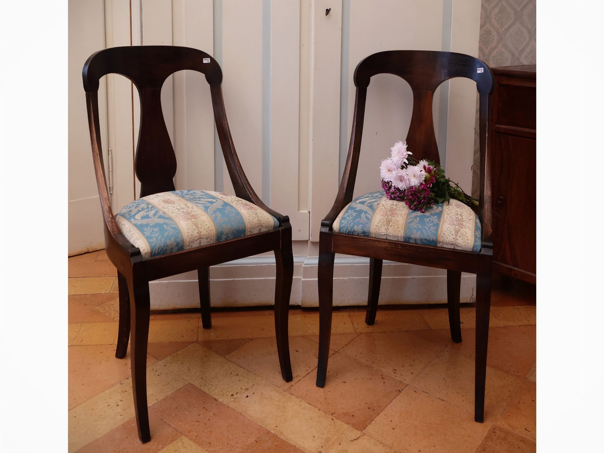 XIX secolo sedile rivestito in tessuto damascato