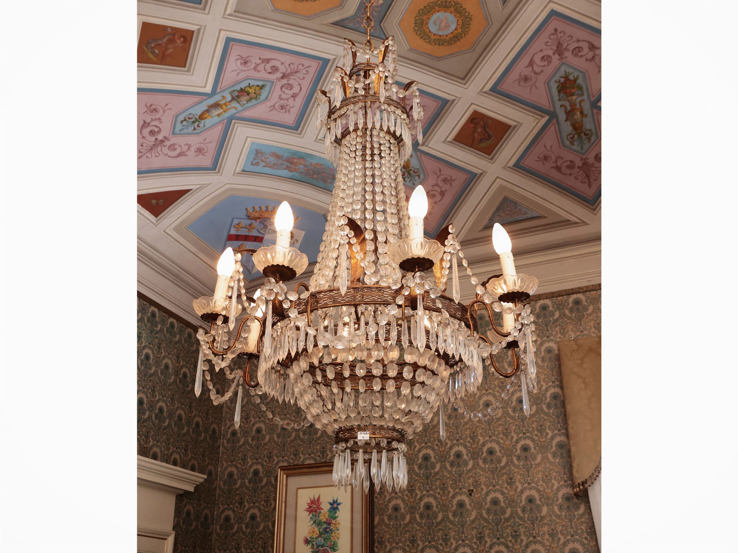 Grande lampadario a paniere in vetro e metallo dorato  - Asta Un'antica dimora marchigiana: Arredi antichi e Arte contemporanea - Associazione Nazionale - Case d'Asta italiane