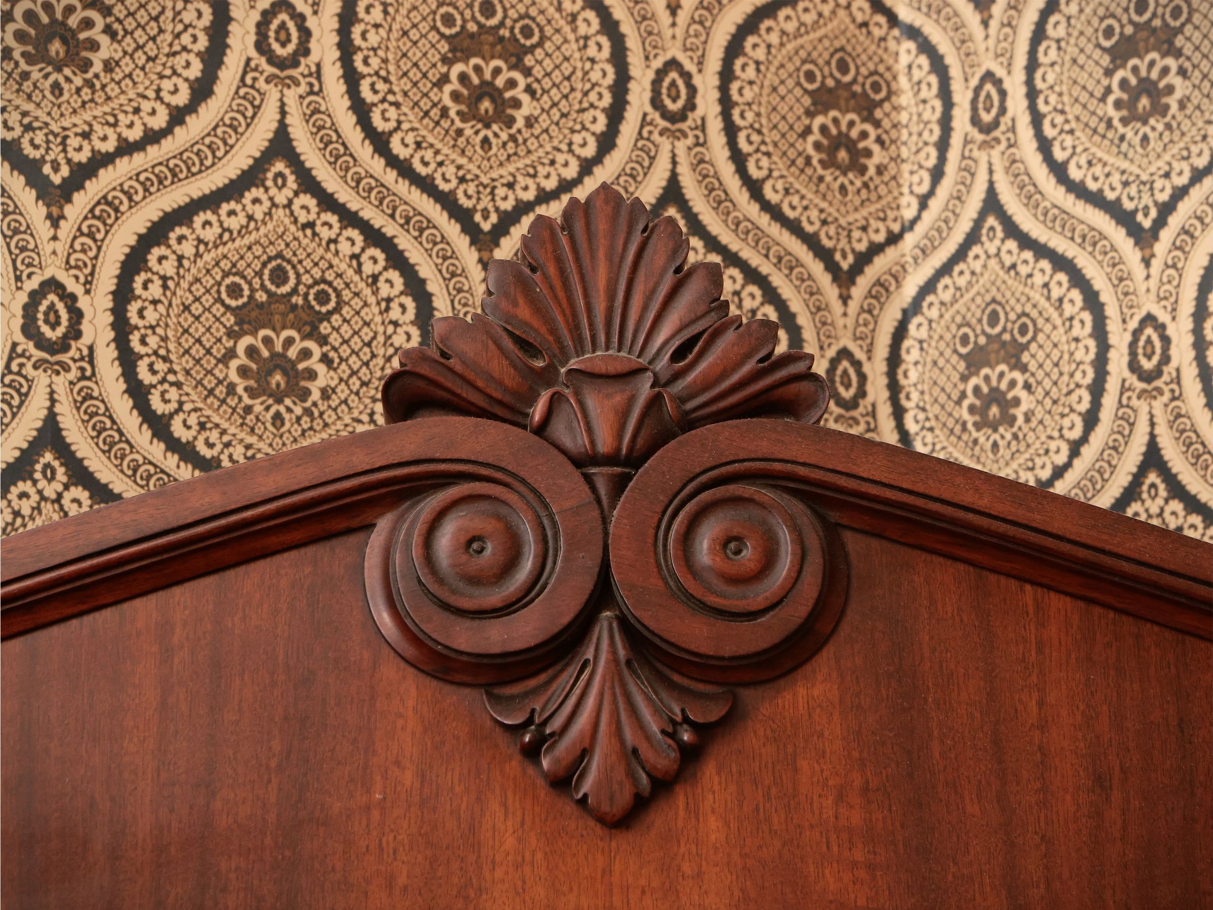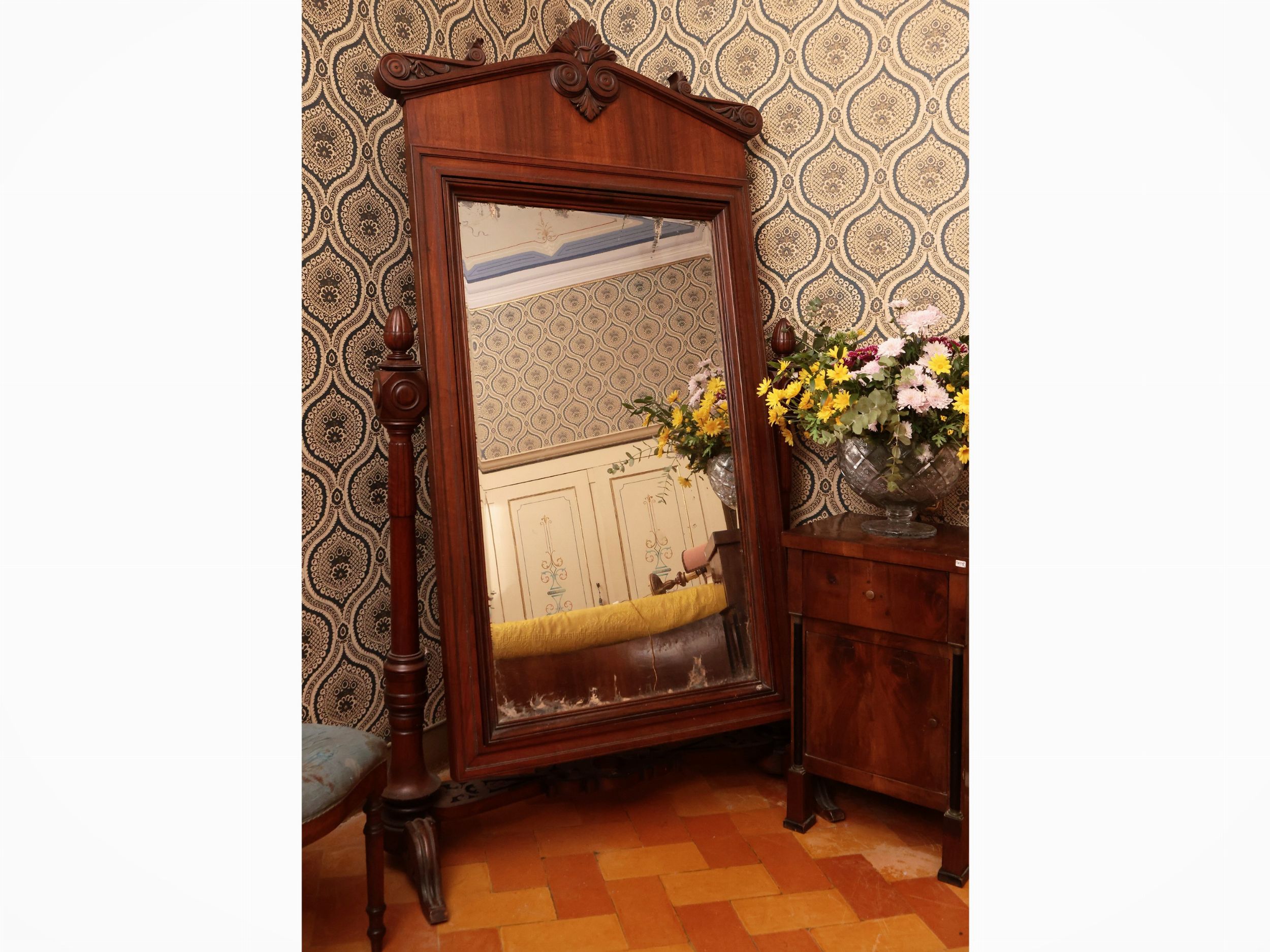 prima metà del XIX secolo cimasa intagliata con motivo di volute sinuose contrapposte e sormontata da palmetta, lesene a colonna con finale a pigna, doppio piede con traversa sagomata e traforata