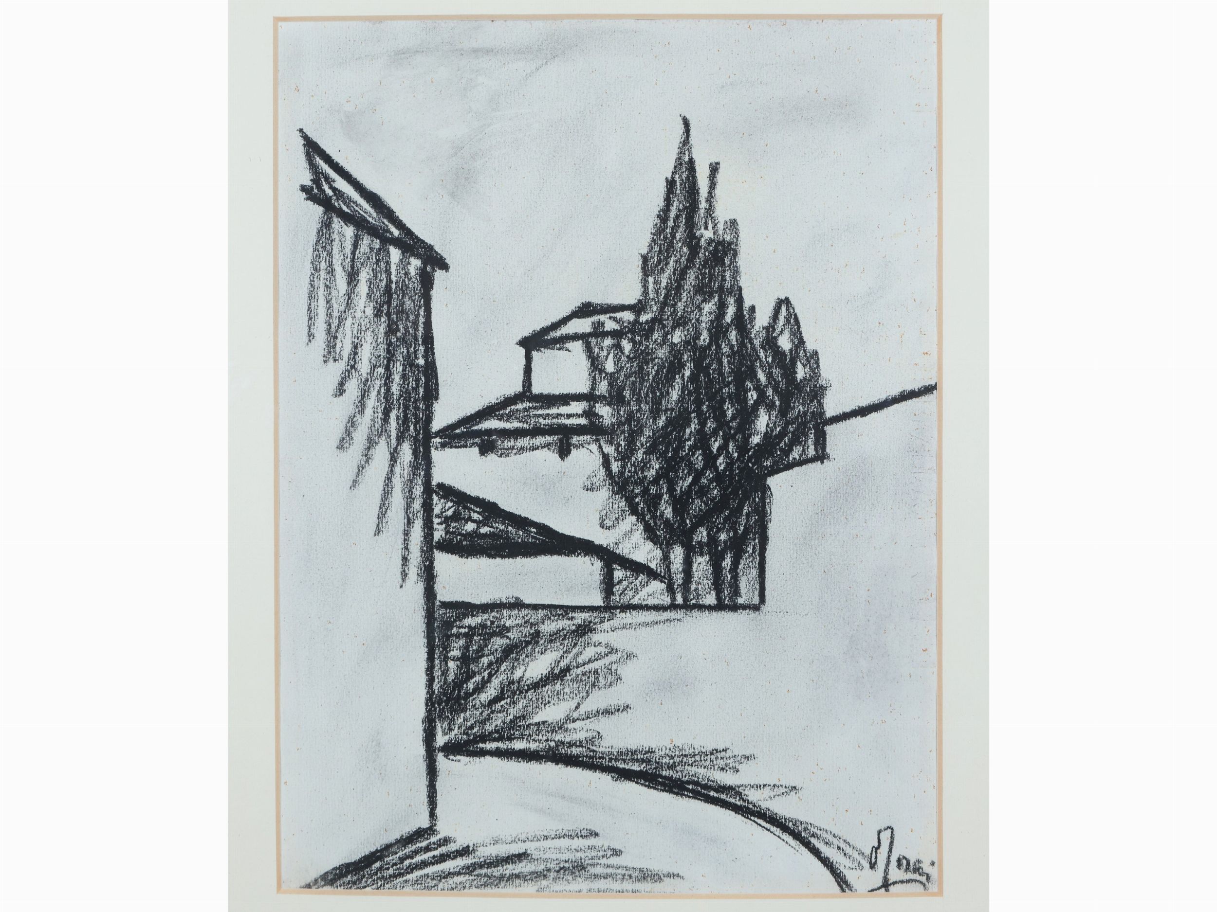 matita contè su carta, firmato, in cornice, alcuni difetti