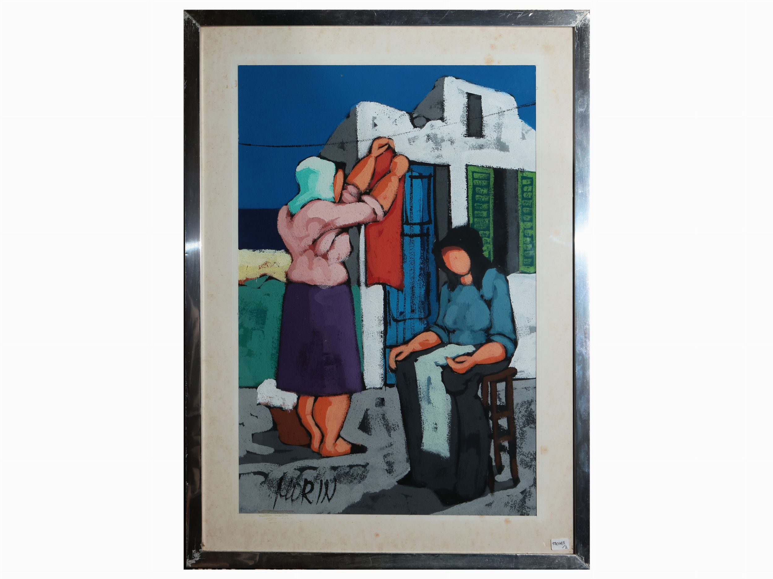 XX secolo coppia di dipinti a tecnica mista su carta, firmati Morin, in cornice, lievi difetti