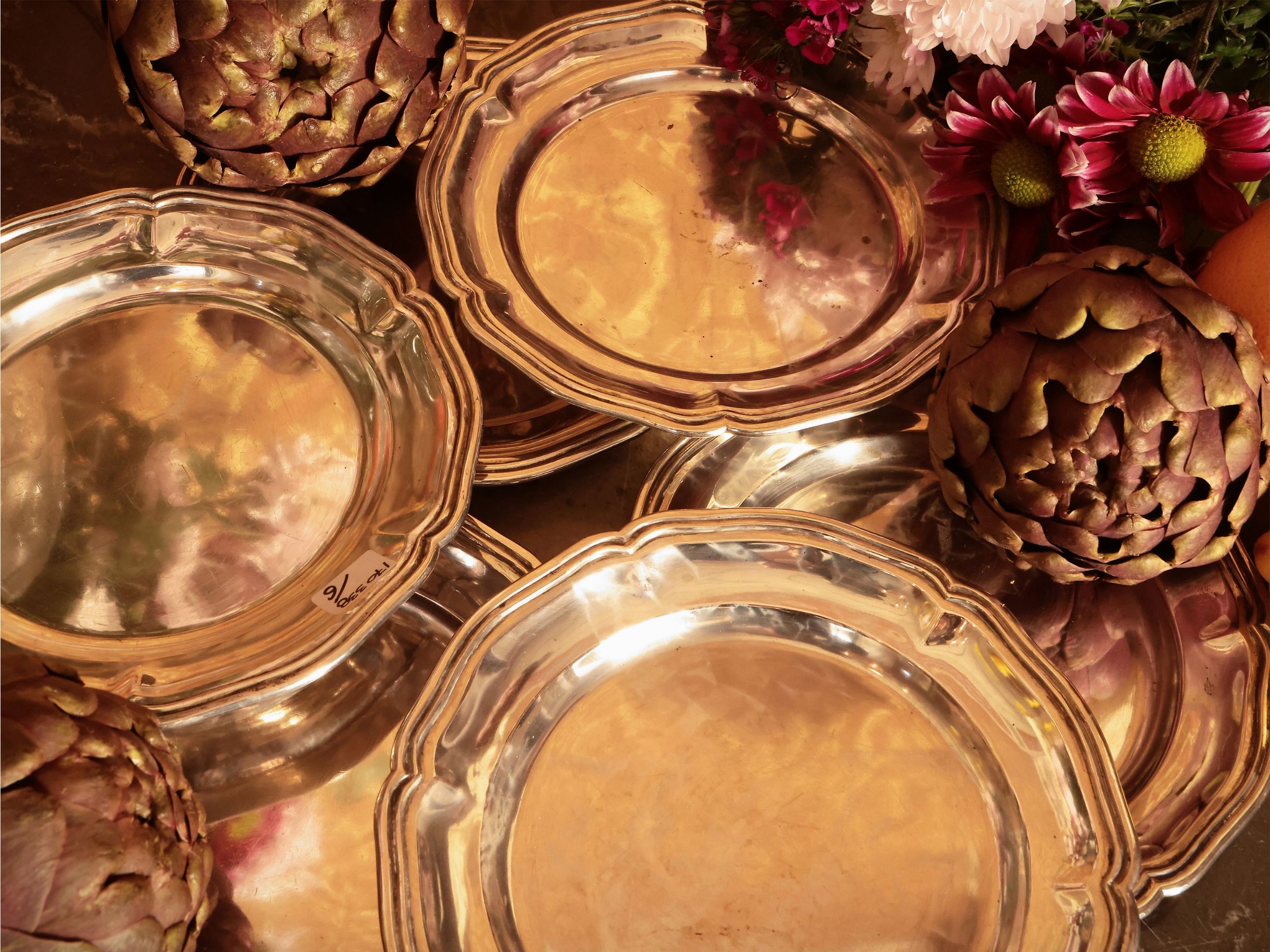 Serie di sei vassoi in argento