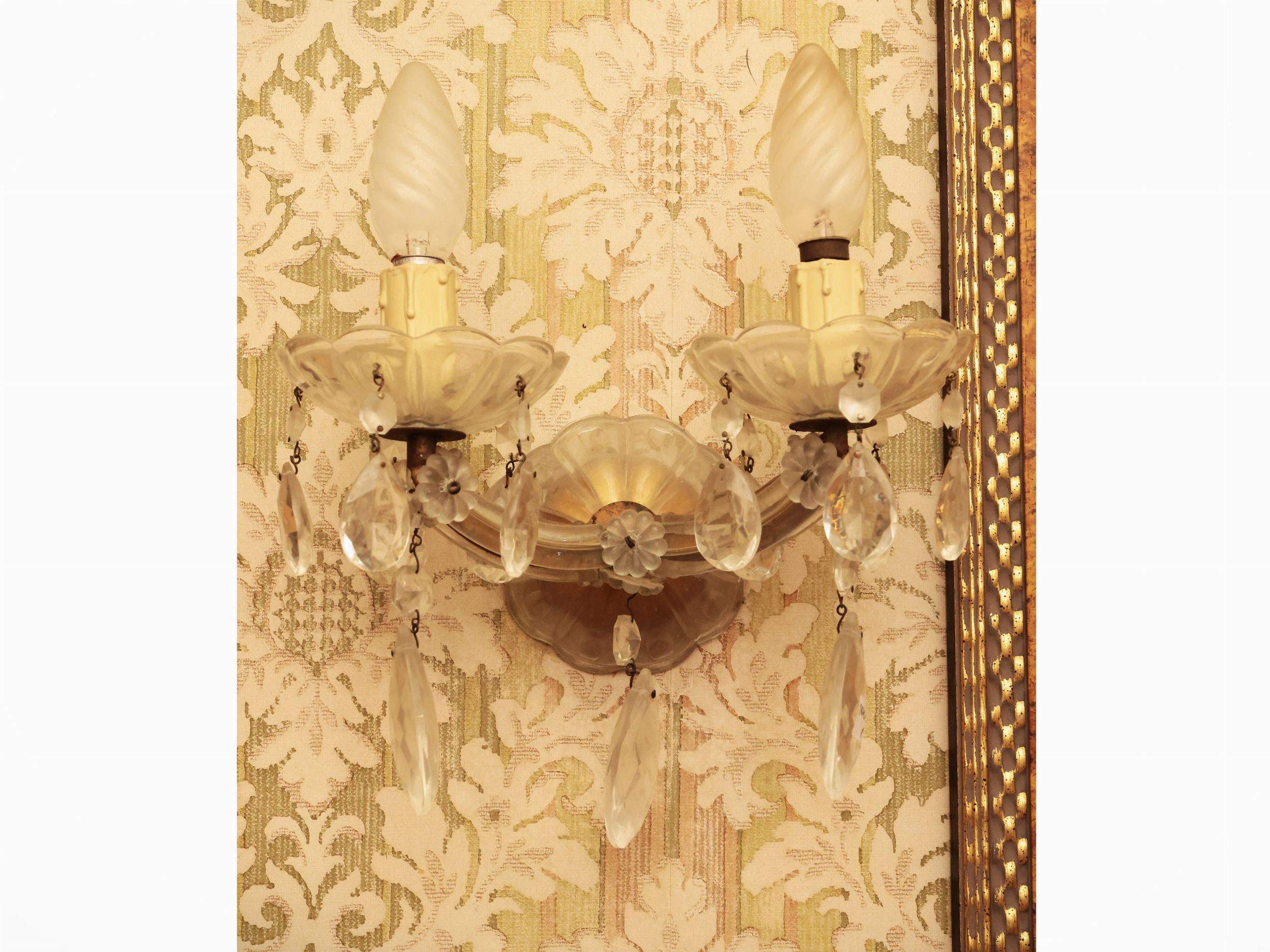 Serie di tre applique in vetro e metallo dorato