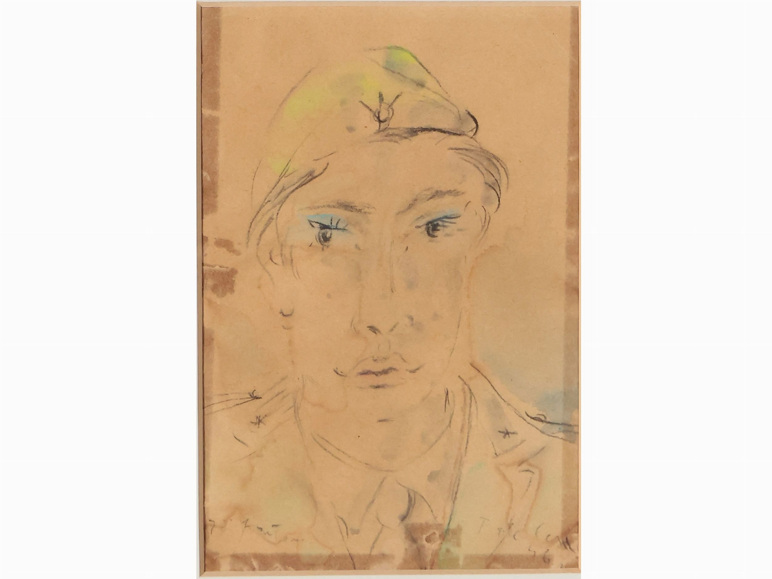 tecnica mista su carta, firmato e datato, in cornice, lievi difetti