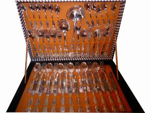 prima metà del XX secolo composto da 12 calici da acqua, 11 da vino rosso, 12 da vino bianco, 12 coppe da champagne, [..]