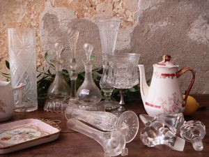 h da cm 19 a cm 29 XIX/XX secolo tra cui una oliera in cristallo corredata da coppia di ampolle, una teiera in [..]