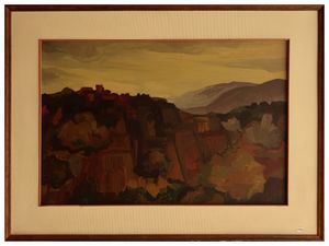 cm 50x70 XX secolo acrilico e sabbia su tela, firmato, al verso firmato, datato e titolato, in cornice