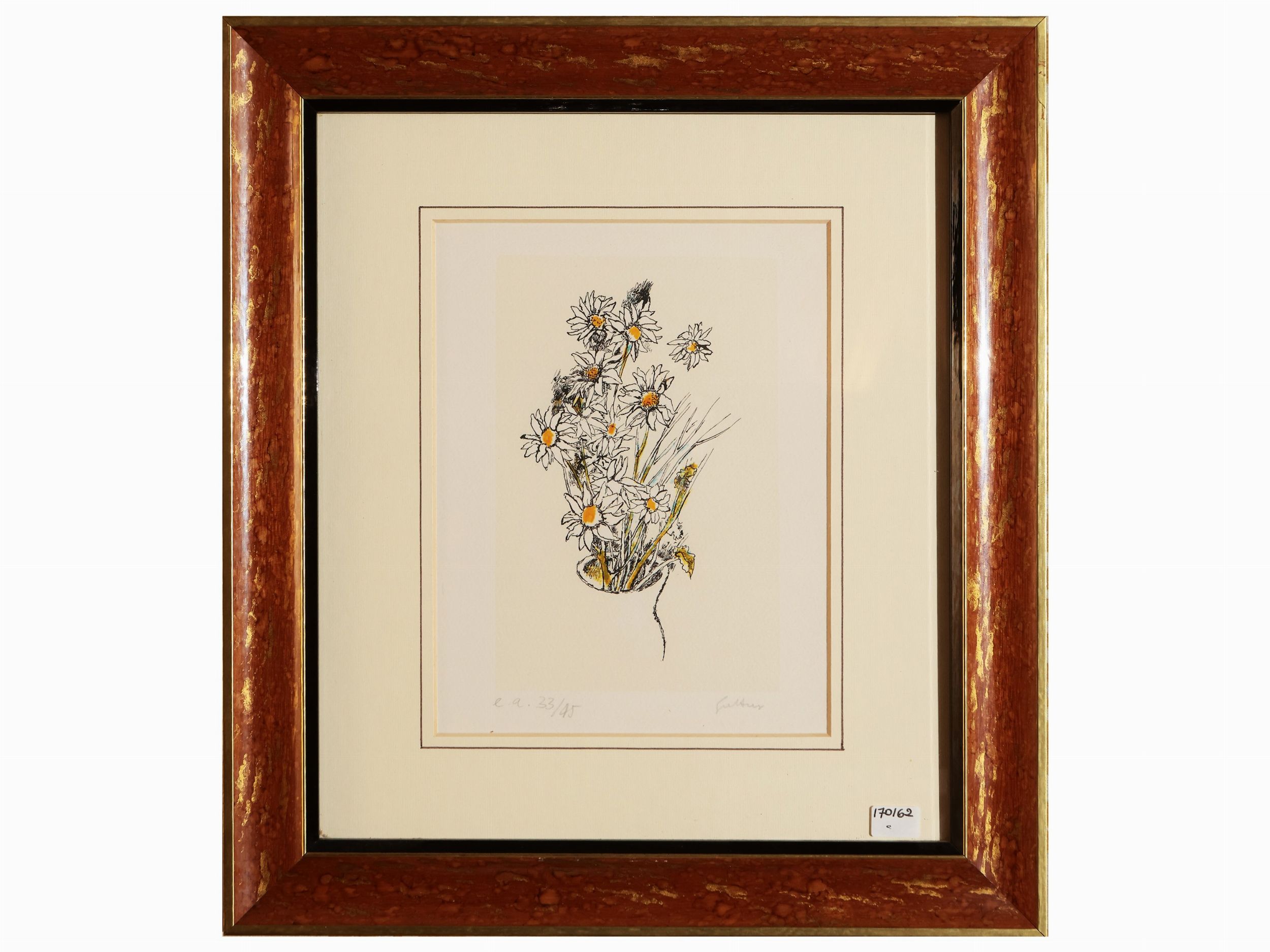 litografia, es. n. 33/45, firmata, in cornice, lievi difetti