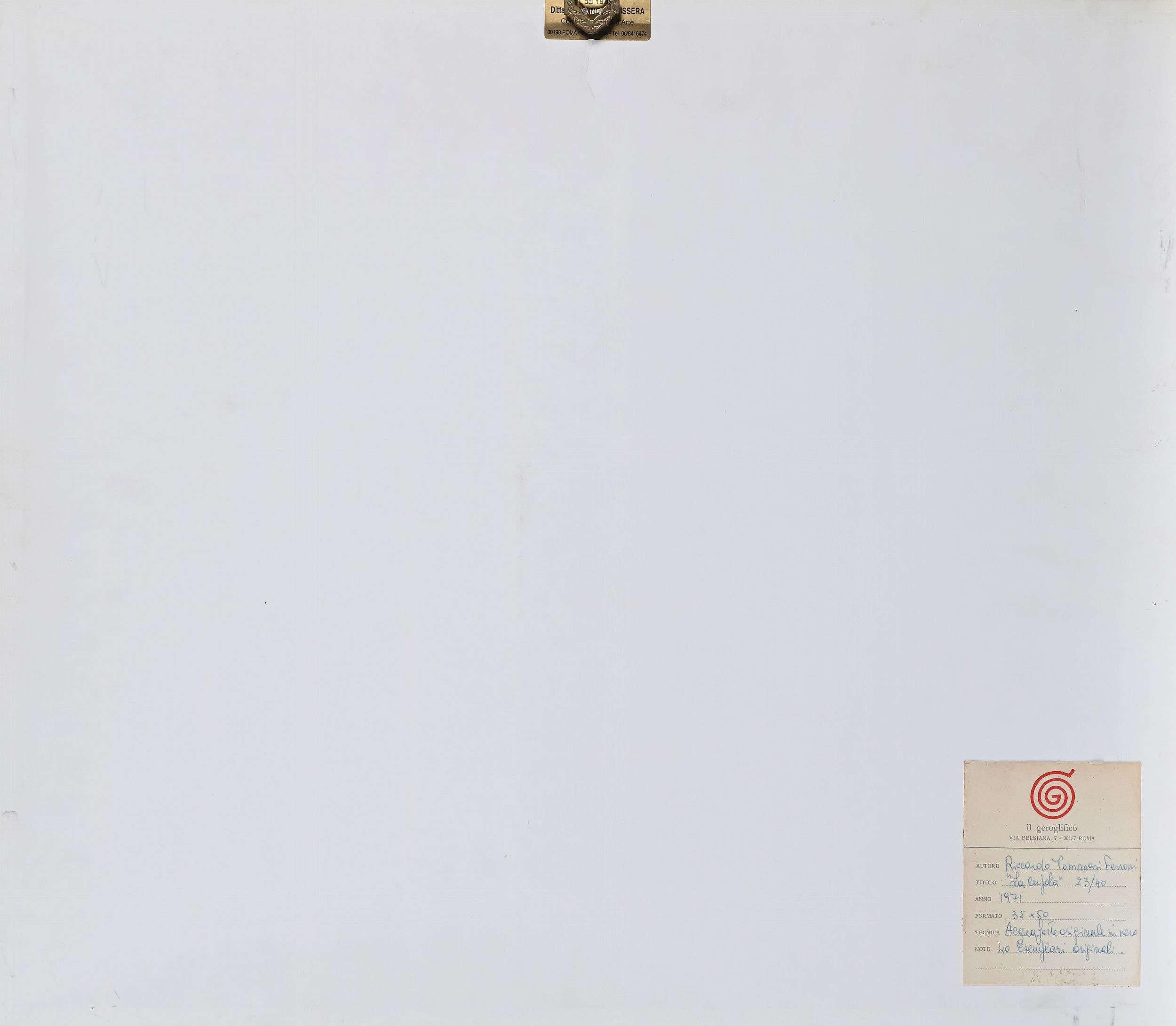 1971 Firma e numerazione 'R.Tommasi F. 23/40'. Al verso reca etichetta della Galleria Il Geroglifico, Roma