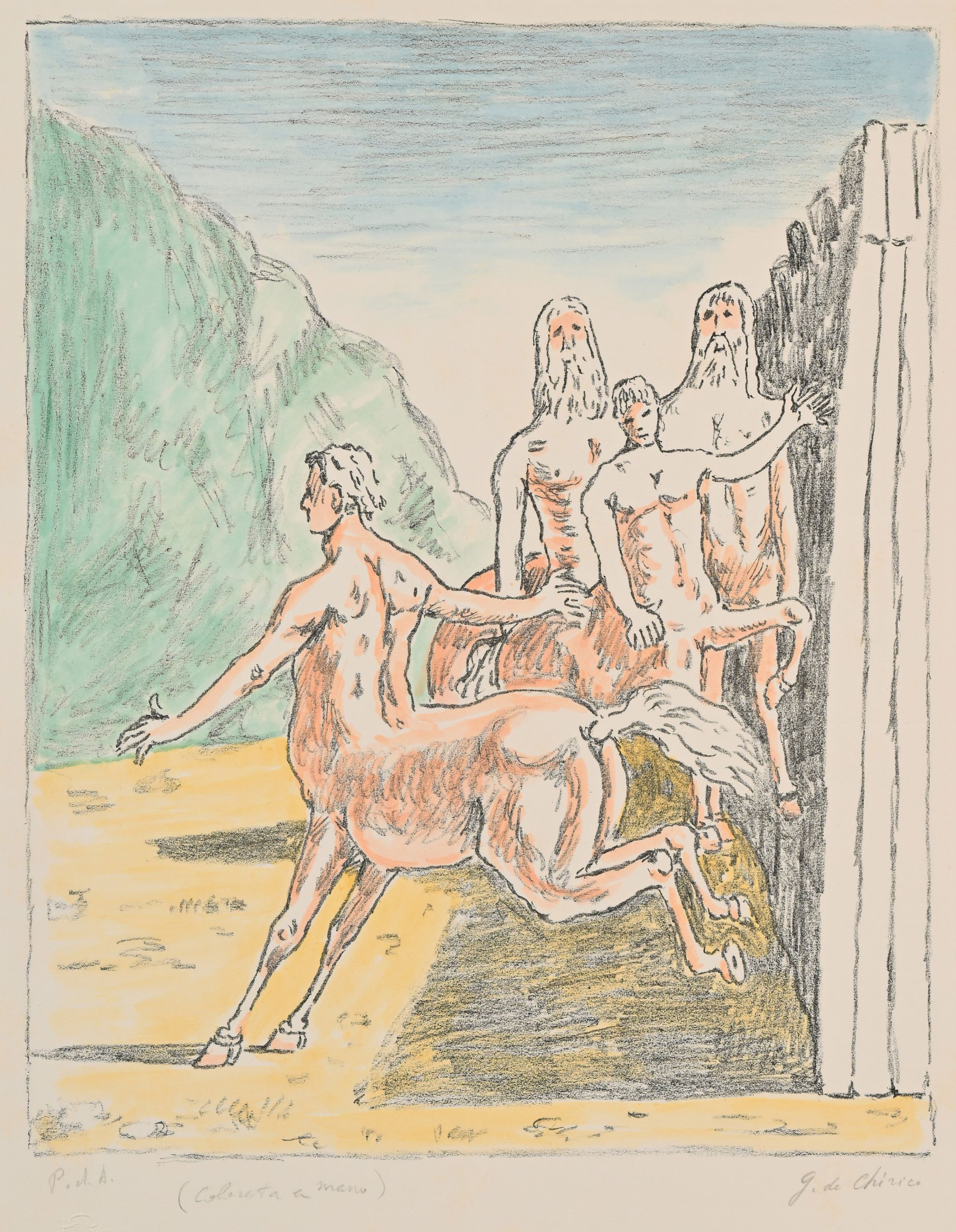 1973 Firma e numerazione 'G. De Chirico p.d.a. colorata a mano'. Timbro a secco 'Giorgio De Chirico' e 'Alberto Caprini stampatore in Roma'.