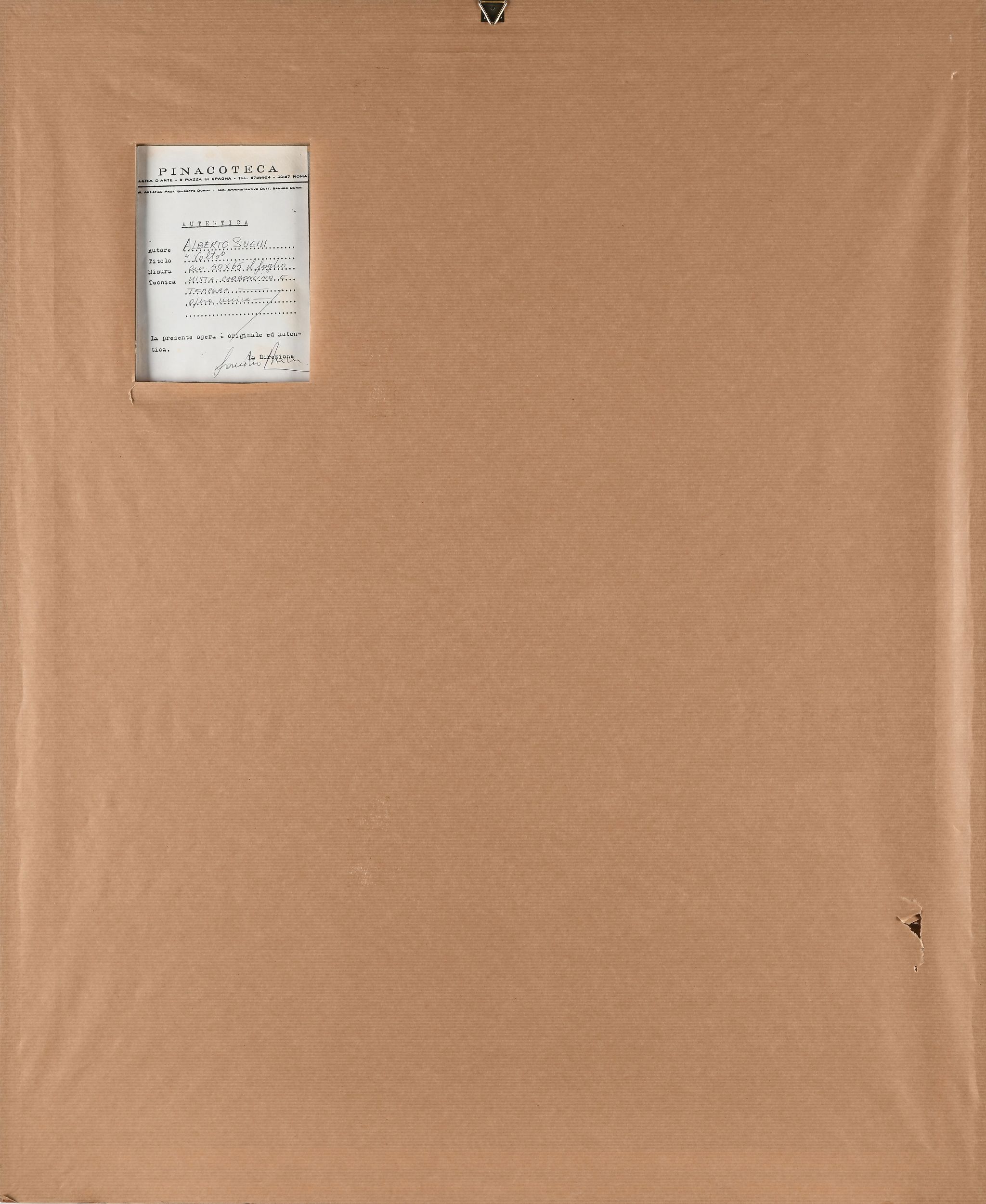 Firma in basso a destra 'Sughi'. Al verso reca cartiglio della galleria Pinacoteca, Roma