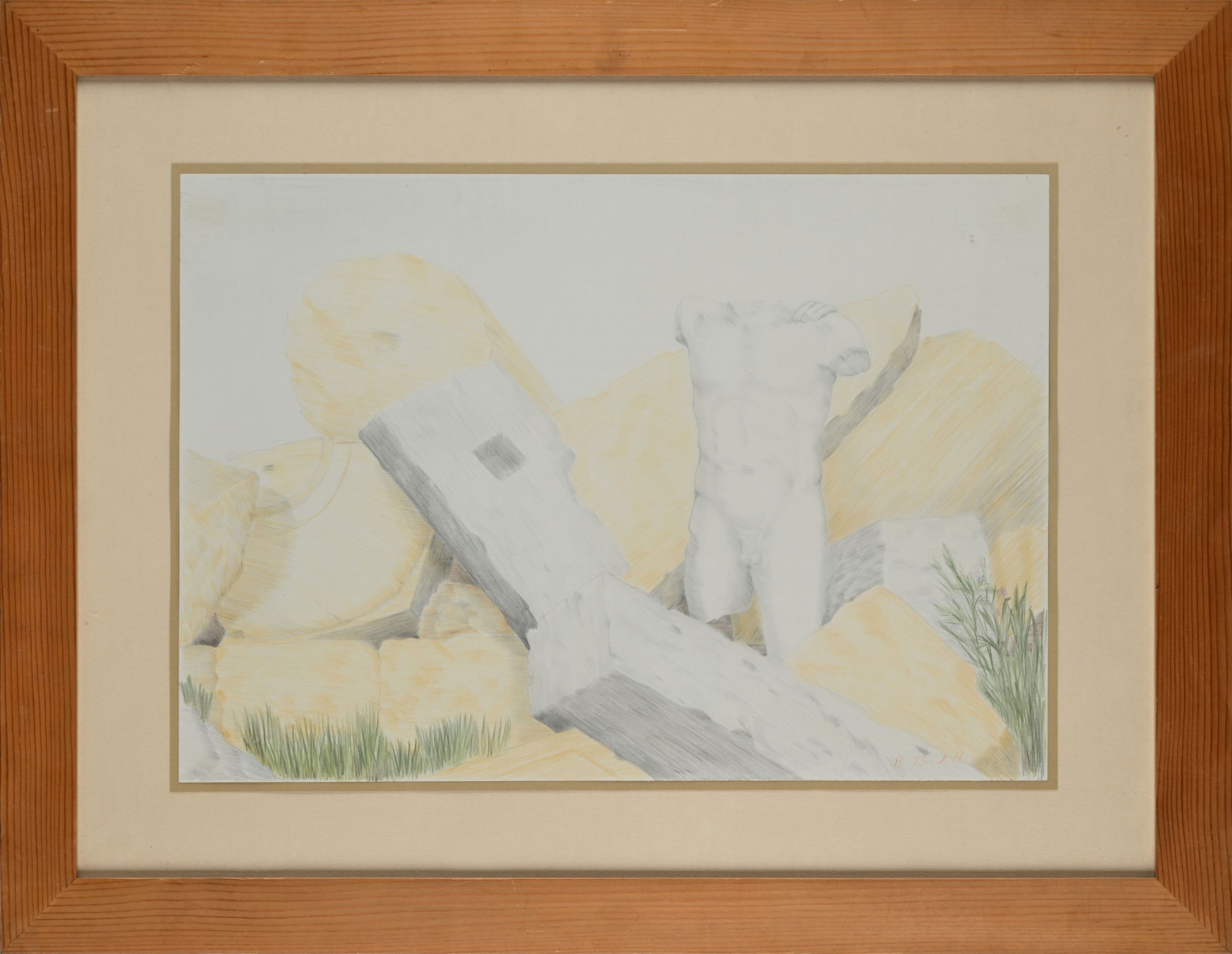 Matita e pastelli su carta, cm 35x50 - con cornice cm 55x70